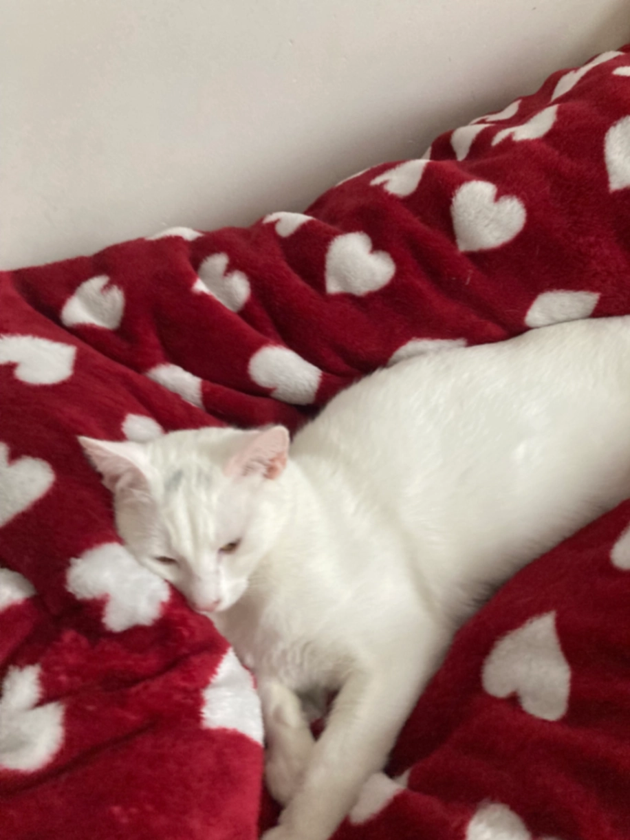 Er ist weiß sehr schüchtern versteckt sich gut er könnte in Büschen sein