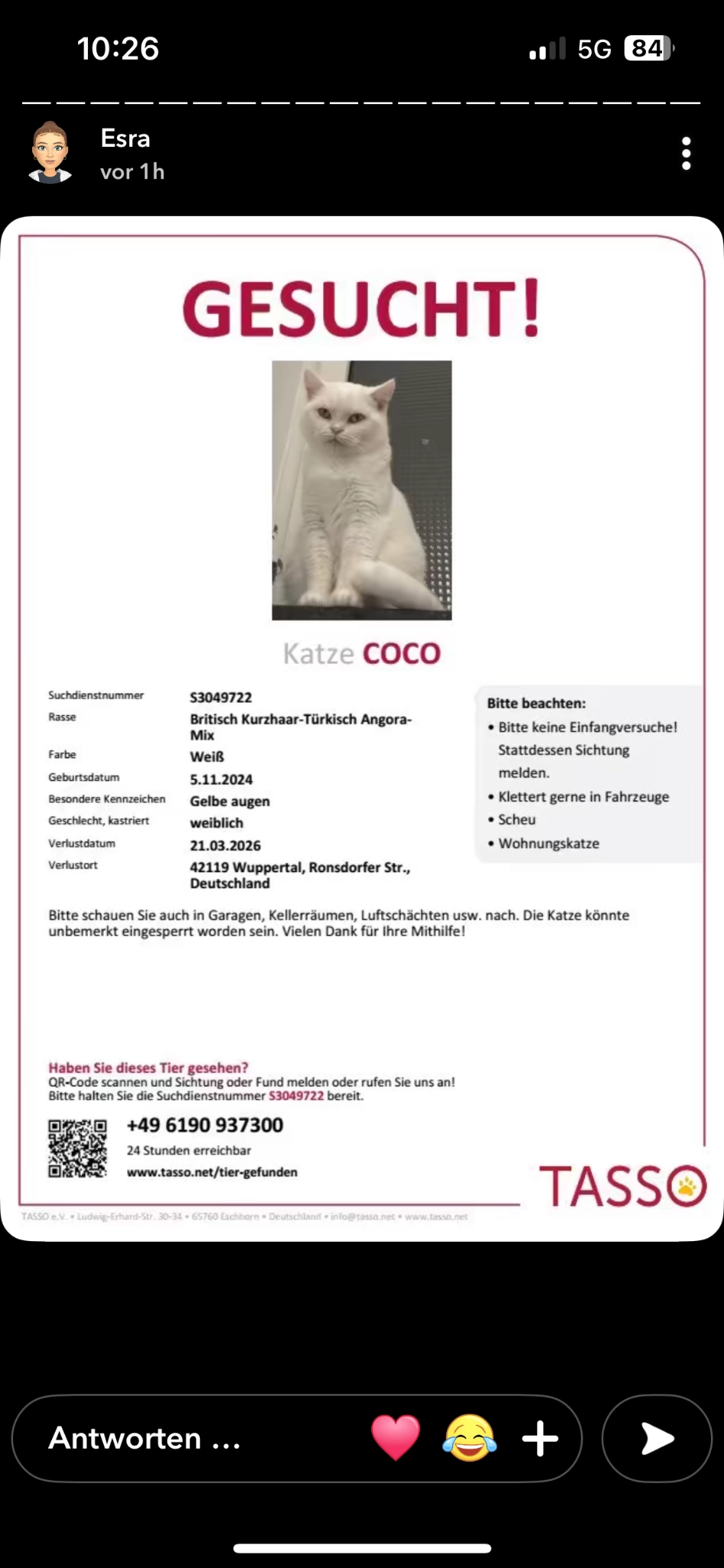 Coco ist möglicherweise scheu und konnte sich verstecken.