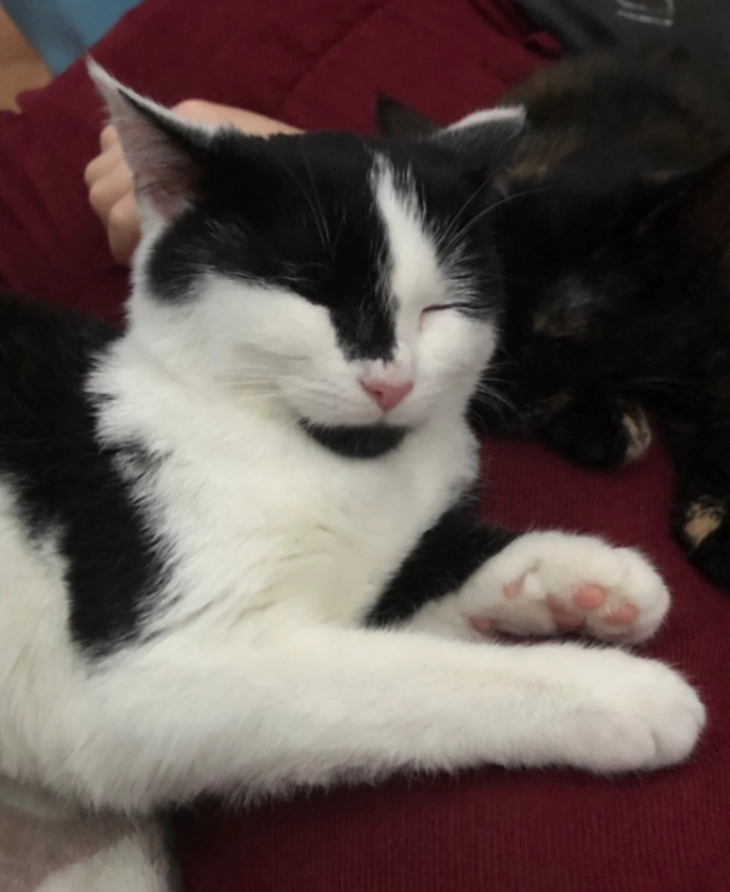 Male cat, not neutered, very gentle and curious cat, little piece of ear missing, has a curley tail,