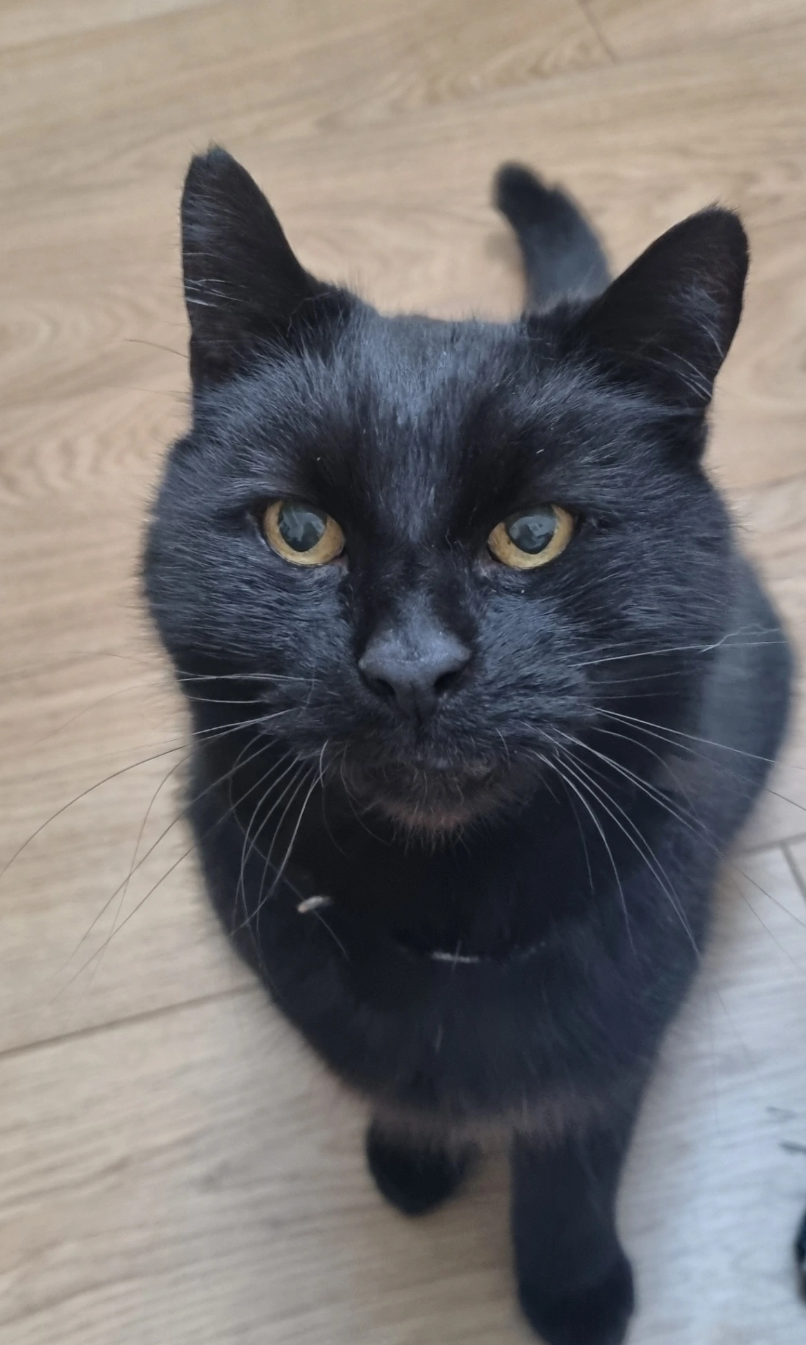 13 year old black cat wearing a blue collar. Missing since 16th March 2026