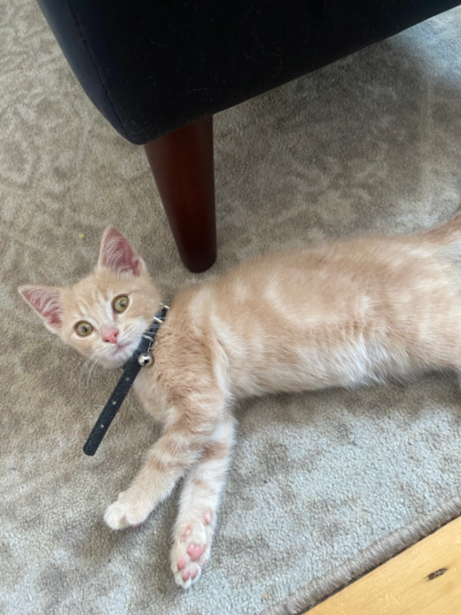 Extremely friendly British Shorthair boy, light ginger with a white chest and black tip to his tail and ginger eyes. Has a teary left eye. Likes to follow strangers home. Chipped. Last seen on 4/12/25. His cat brother Babu and the rest of his family really miss him and want him home safely!!