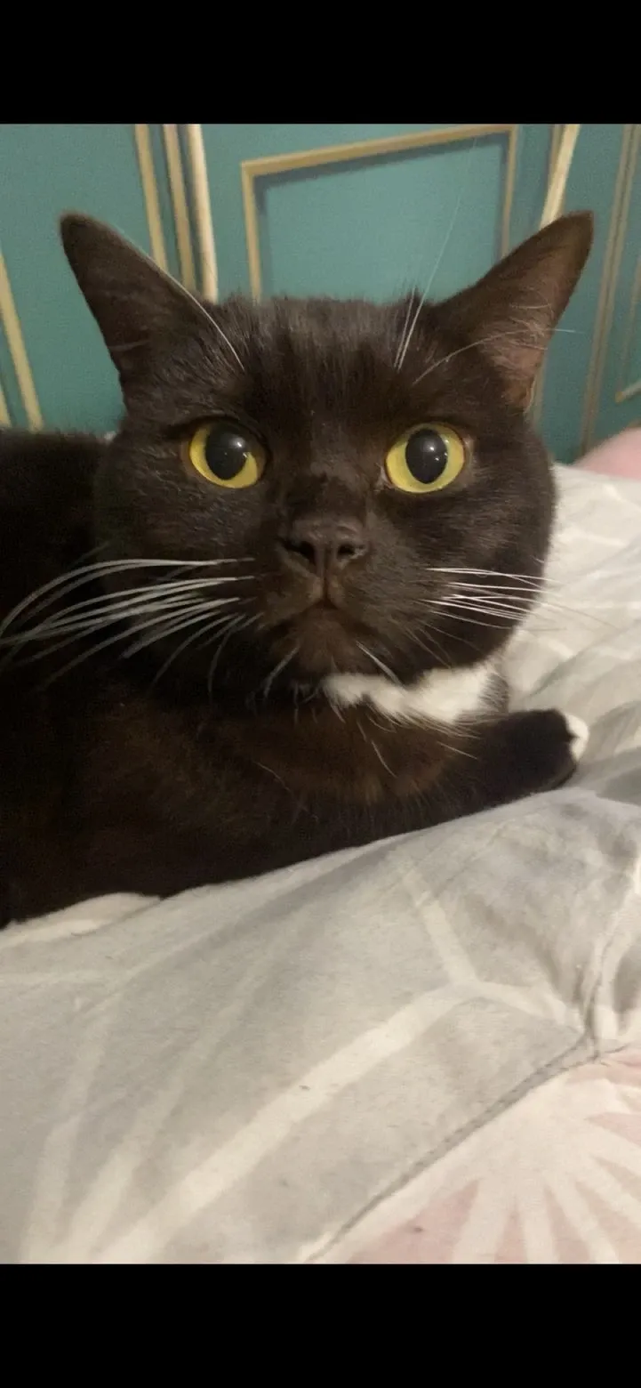Koda is a neautured, microchipped and vaccinated bsh chocolate and white, long white whiskers, paws are white, white marking chest/belly hes 5 years old my 16 year old daughters cat and my daughter is heartbroken