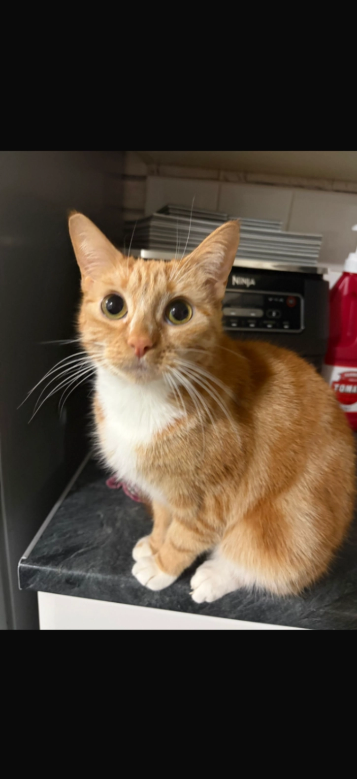 She is a ginger cat and she does not have a collar as she doesn’t like it. She will be very scared and may run it apprached