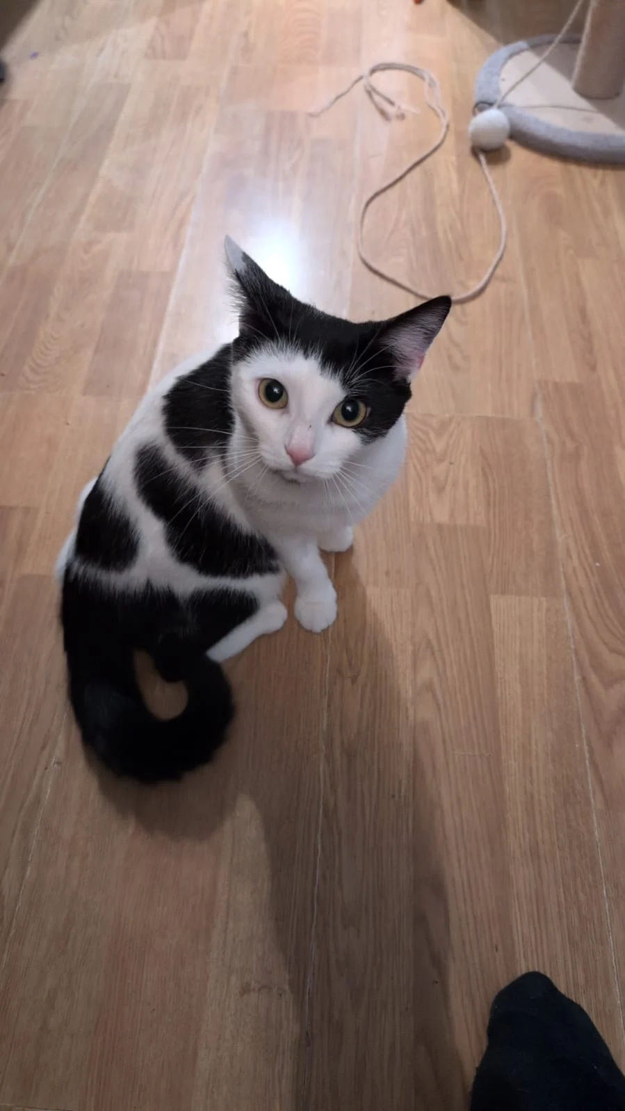 1 year old, white and black very brave and friendly responds to being called Ori or sausage