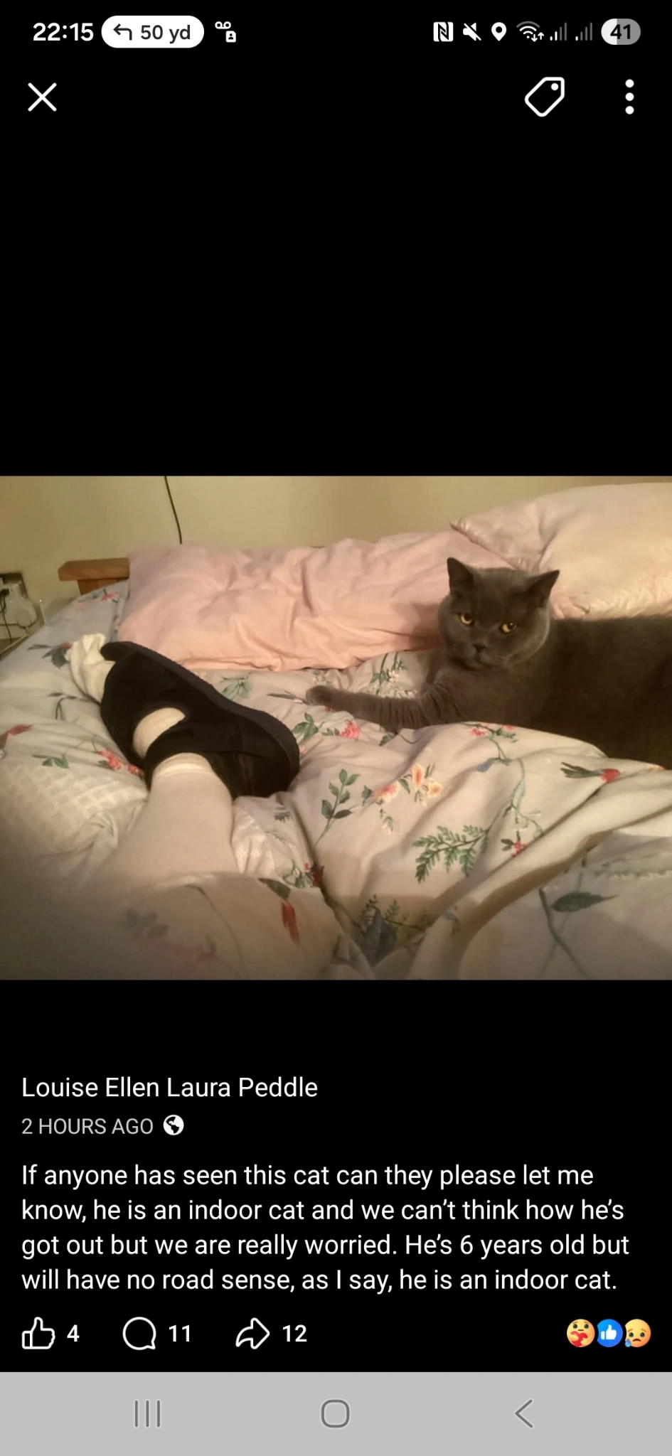Smudge = black and white fluffy cat, v ery friendly. Chipped, spayed