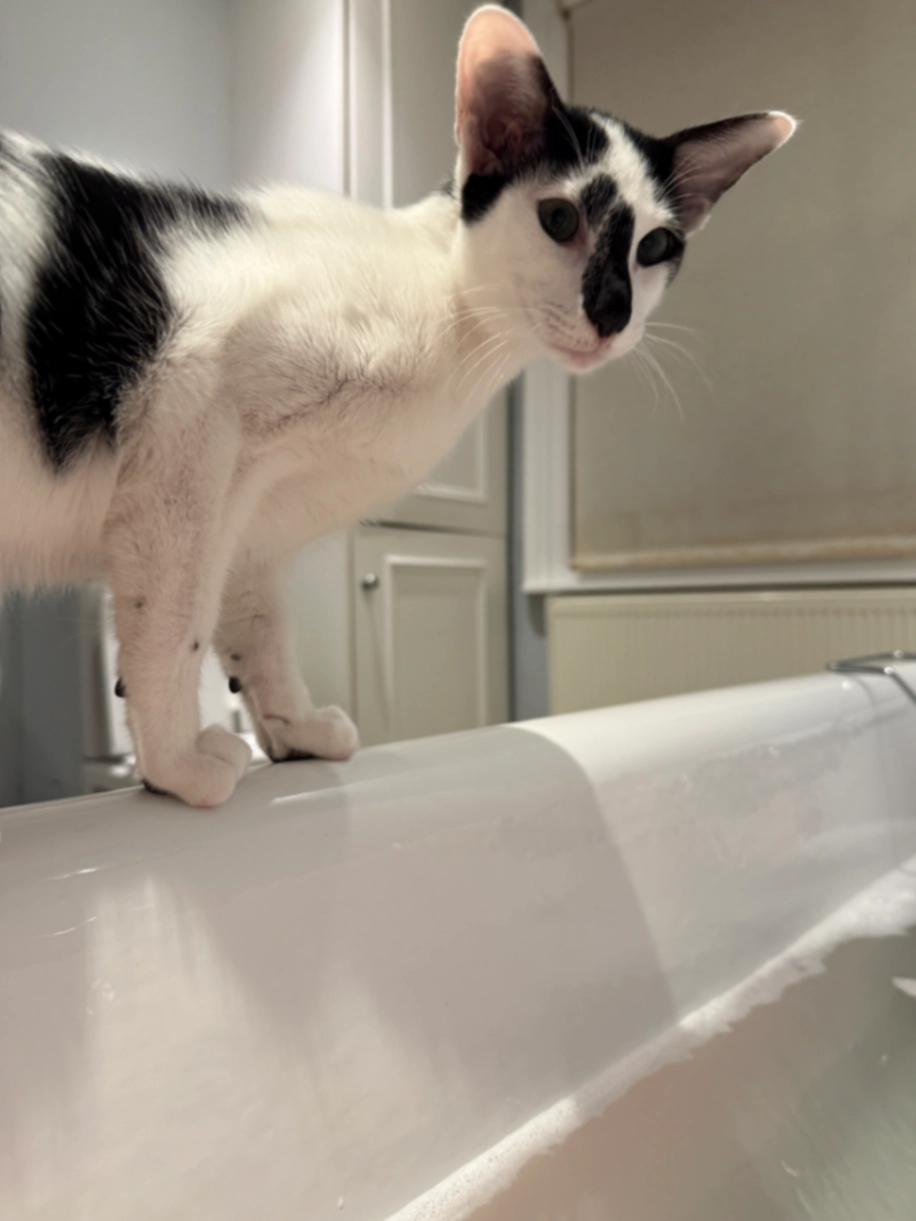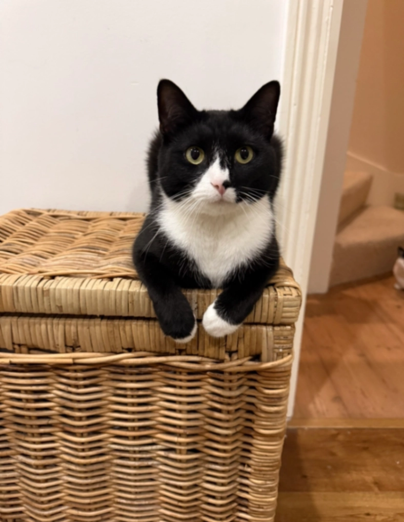 Lionel has been missing since yesterday (21st April) but it’s very unlike him to not come home for food. He is a very sweet, friendly cat who gets startled easily. He is black and white with a white tux and a black mark on his nose. His right back leg is all white.