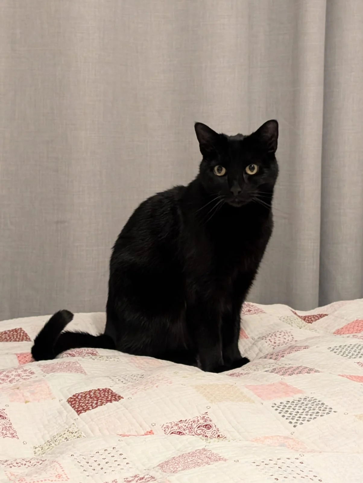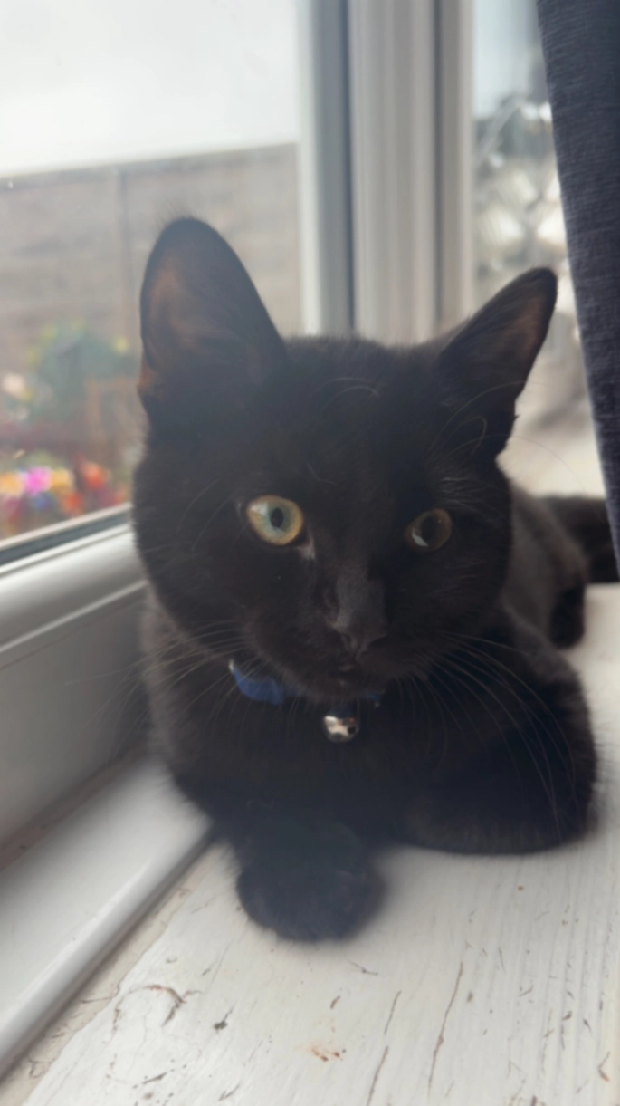 Black domestic cat. 10 yo, microchipped. Been vaccinated on 30.03, could be weak for a couple of days.