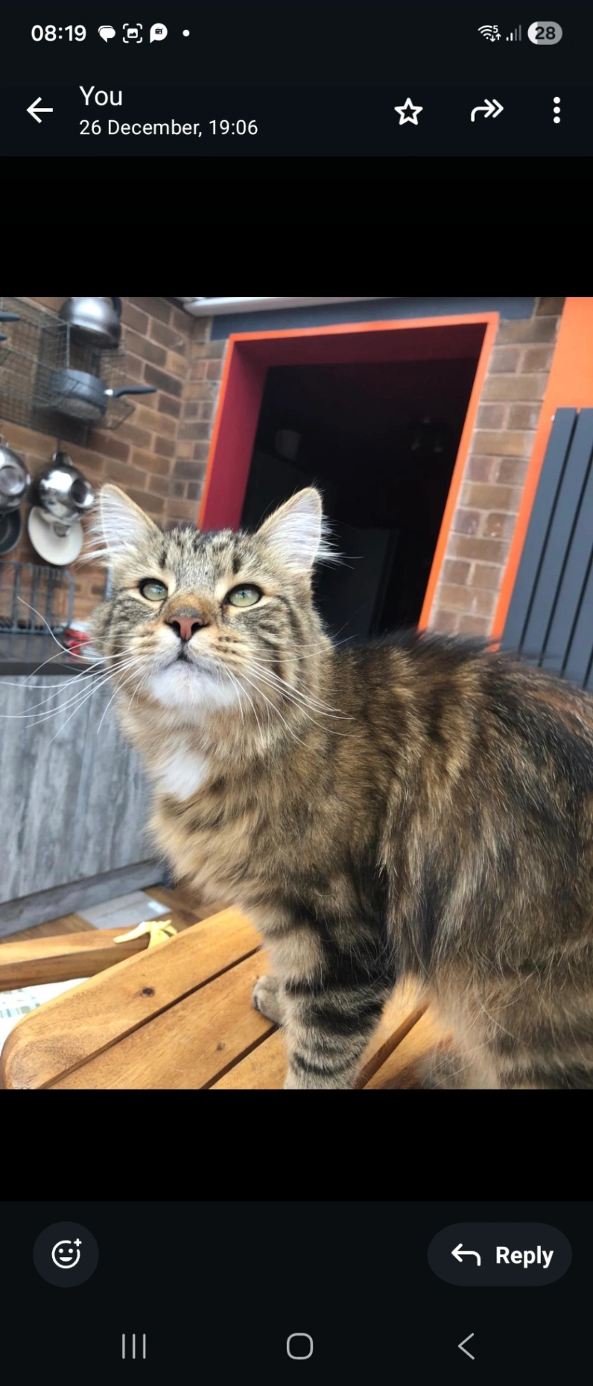 GeoffReunited after4d, 13hPetRadar found out cat! Thank you so much. He was missing for a week in December when it was really cold and we were incredibly worried. 1 week after he went missing, we got a comment on the petradar Instagram post that someone had found him over a mile from home. And we were reunited 😃 thank you!!