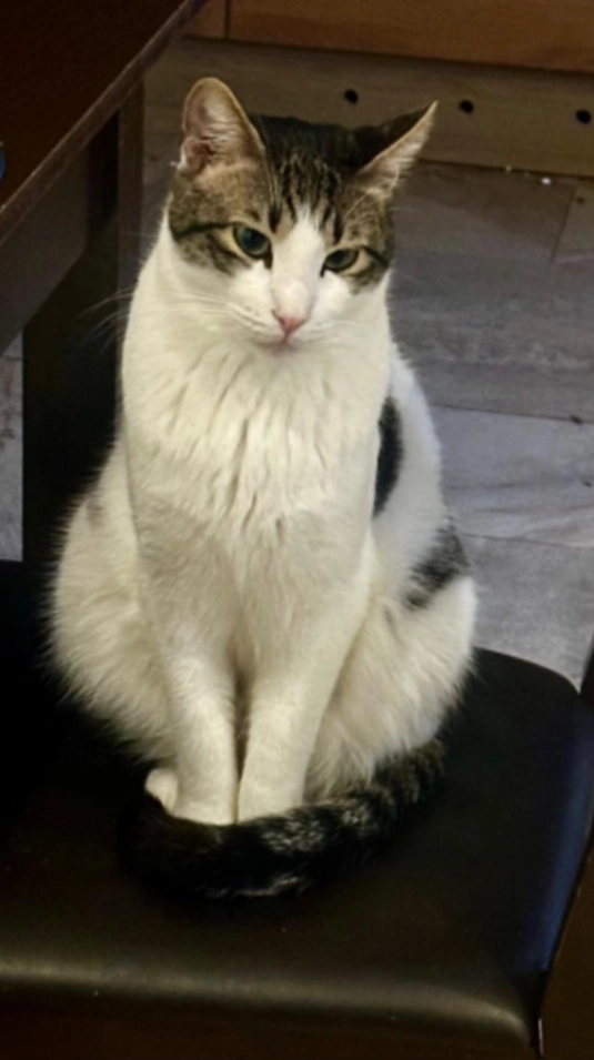 Ozzy is a timid cat. He is very friendly with people he likes, but he can be aggressive towards strangers. He has a tuxedo coat pattern, with a black-and-white face, a white belly, and white, irregular markings on the tips of his paws. He is vaccinated and microchipped. On the day he went missing, he was wearing a red collar with a bow that has his name on it.
