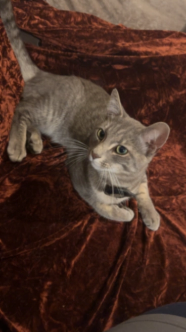 Grey, warms up to people, small for his age