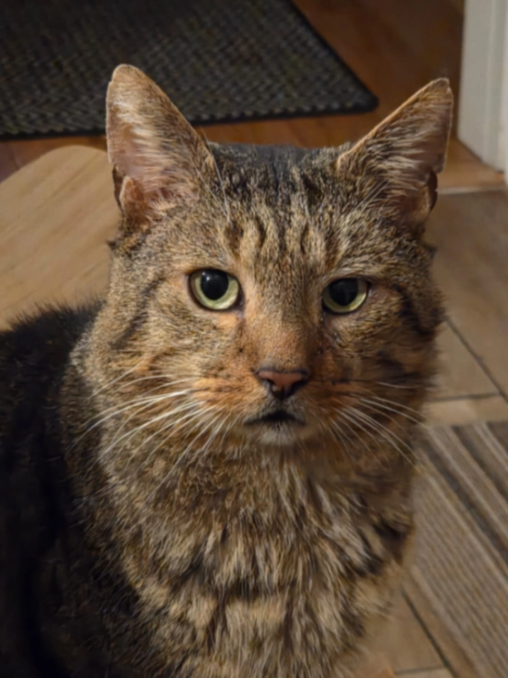 Tabby male cat, slim. Calls by the name Martin.
