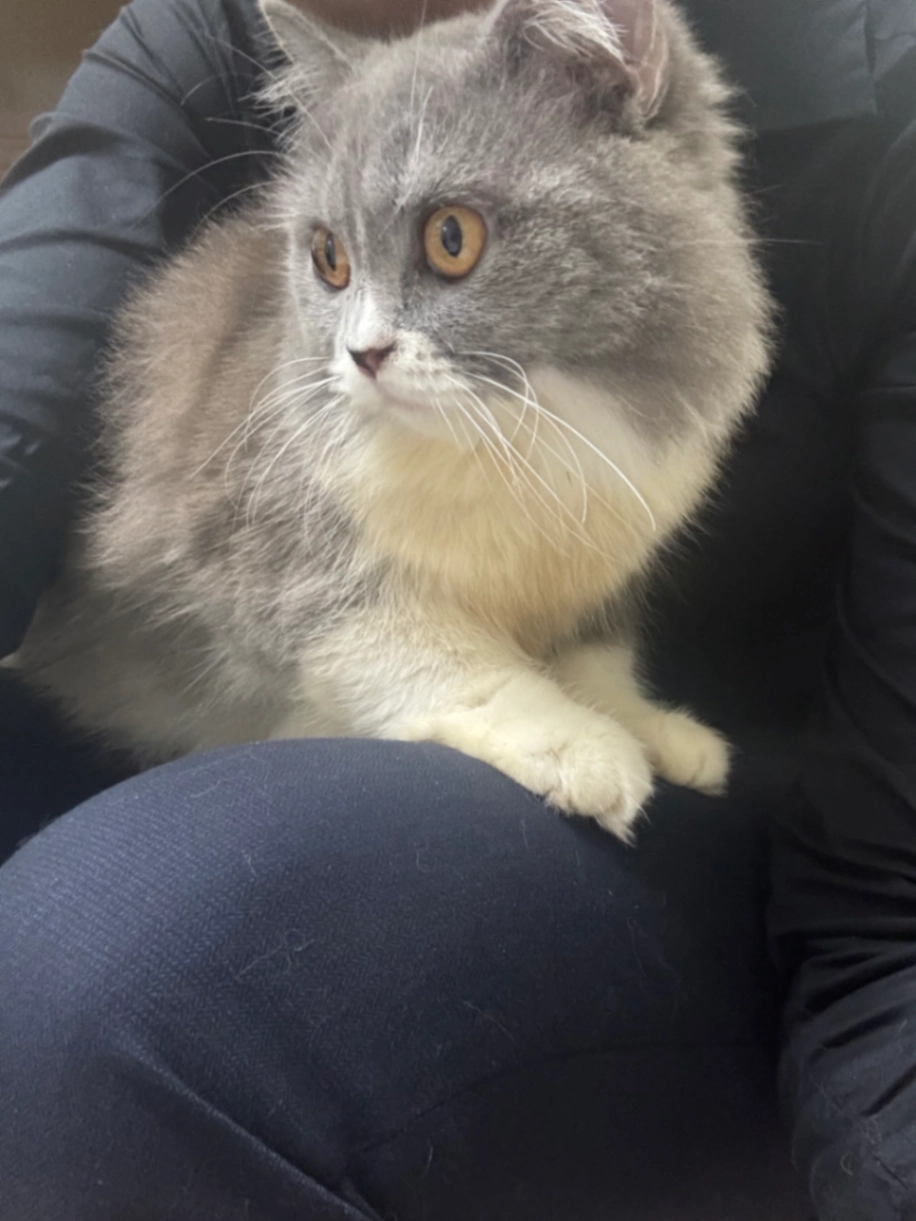 She just had lioncut for her fur.. grey white British long hair