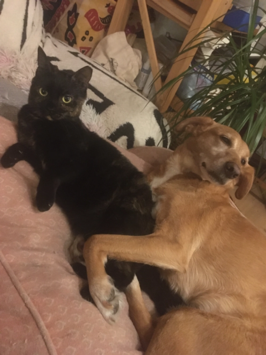 Lou (rechts) wordt enorm gemist door z’n jongere vriendje. Ontreddert mauwend de hele dag.