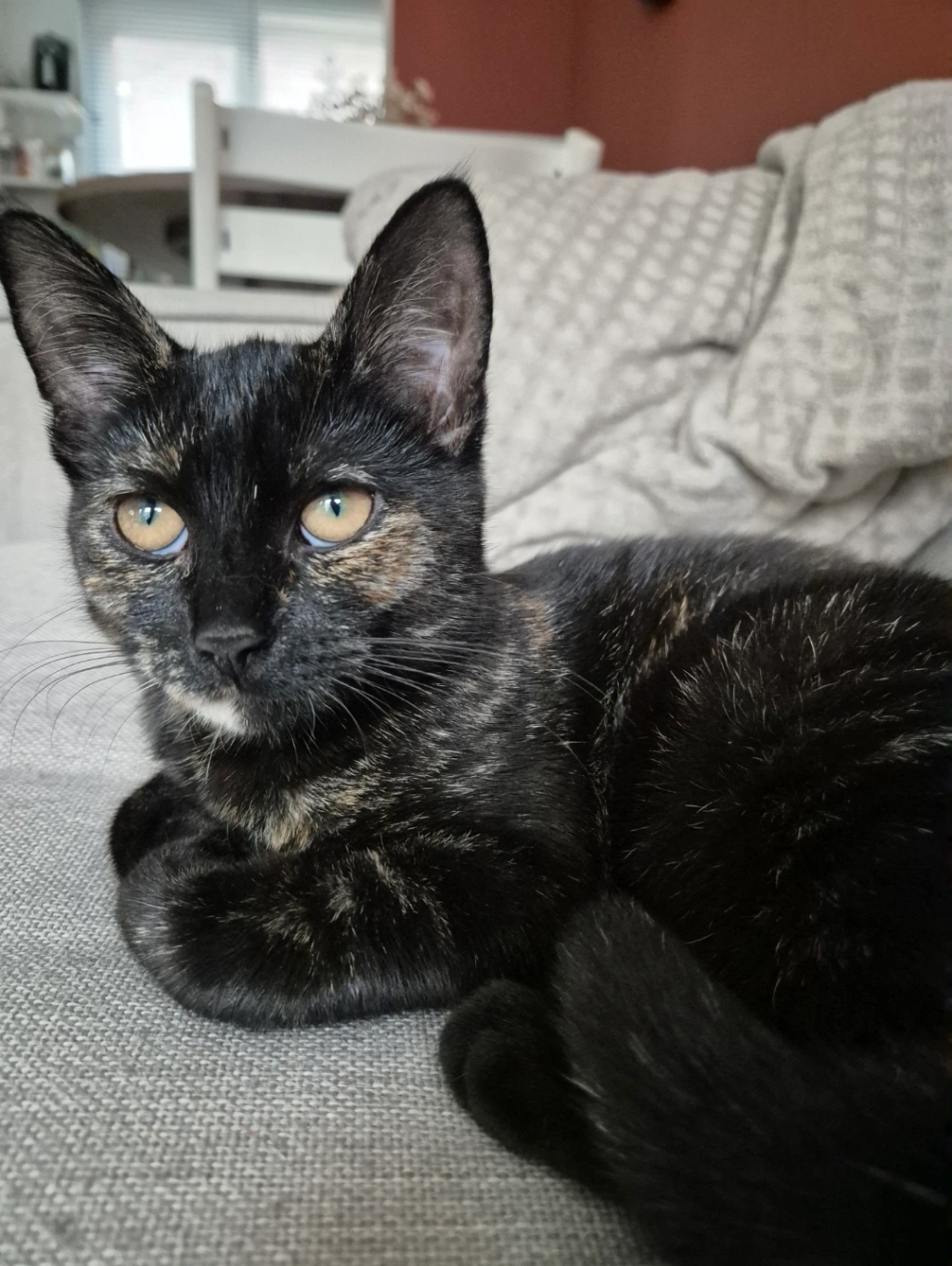 Aanhankelijk, brutaal en ondernemend. Reageert scherp op haar naam. Ze kan makkelijk in een schuurtje of garage terecht zijn gekomen. Is gechipt. Vermist sinds vrijdag 20 maart