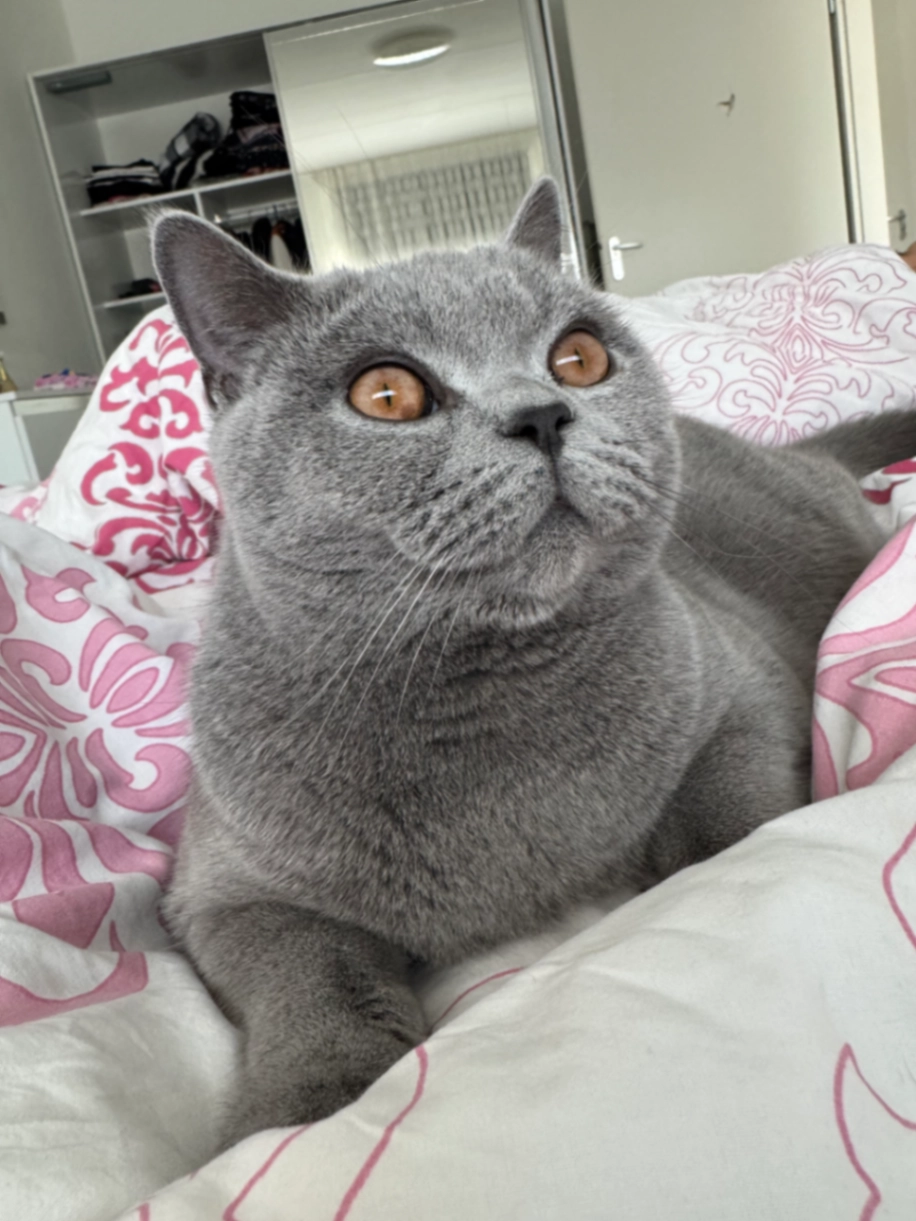 Grijs British Shorthair Hij is bang en kan zich verstoppen.