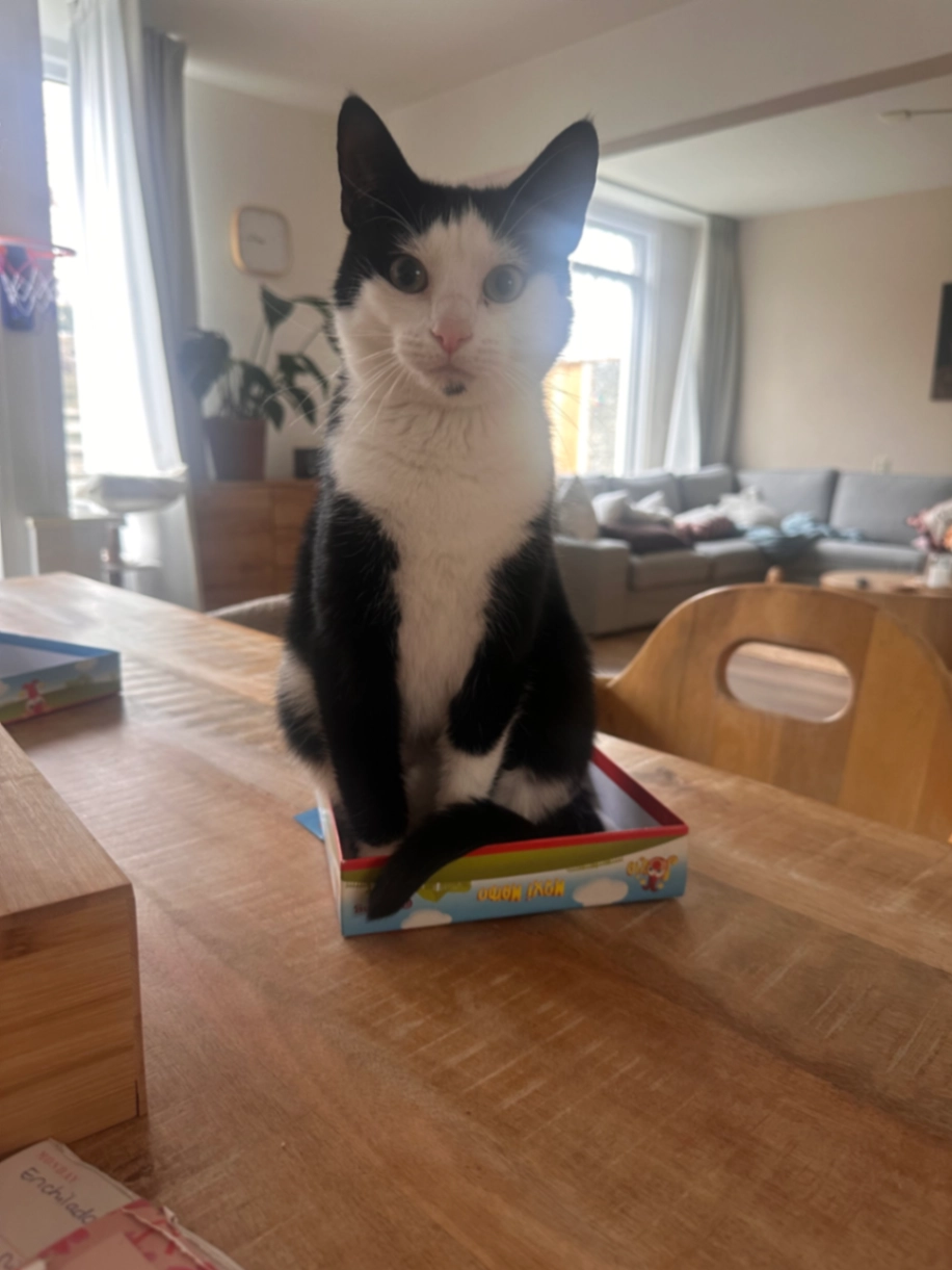 Klein, schuw zwart/wit katje.