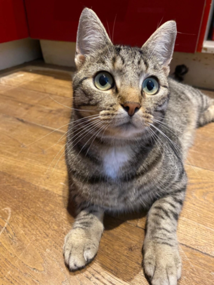 Cypersche grijs gestreepte kat, is wat schuw maar wel heel lief. Is niet bekend in de omgeving. Verwacht wordt dat George zich ergens schuil houdt ivm het slechte weer.