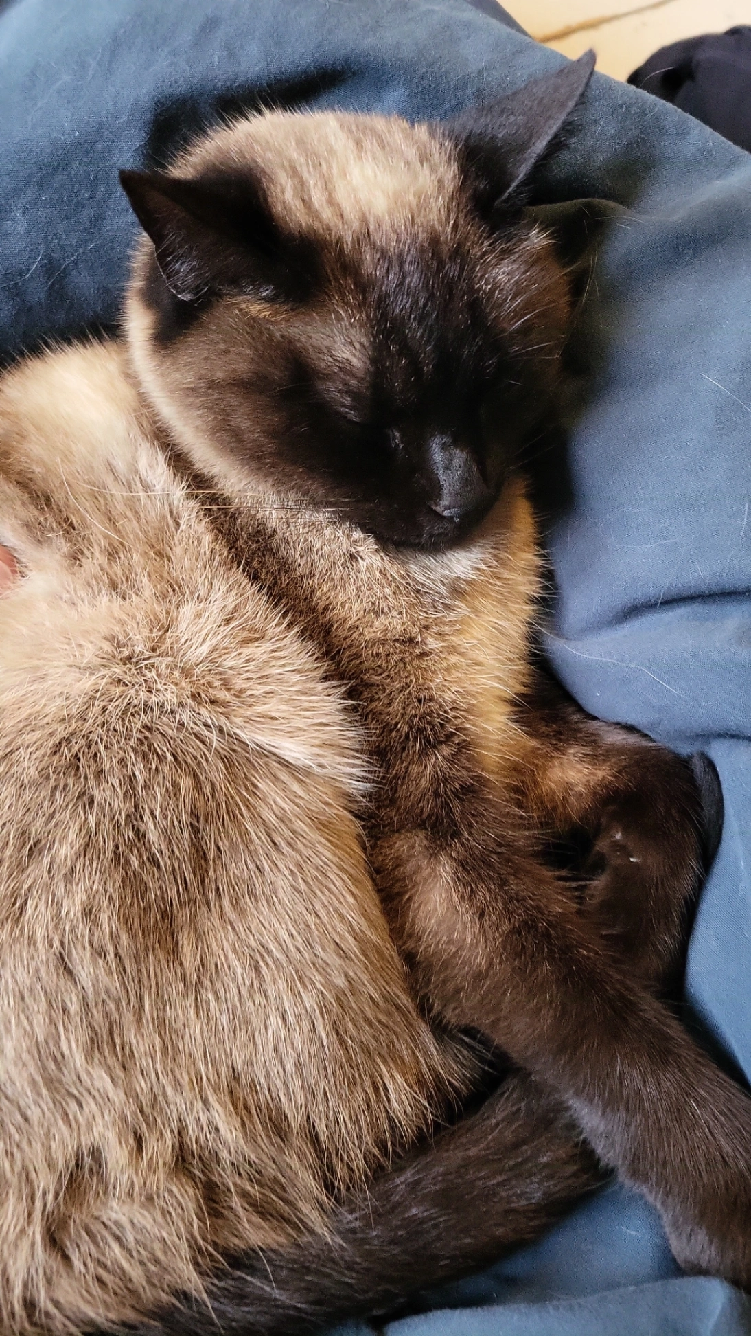 8 jaar oud, gesteriliseerde poes, gechipt. Nieuwsgierig naar mensen niet heel schuw. Colourpoint Siamees. Klein scheurtje in een van oortjes.