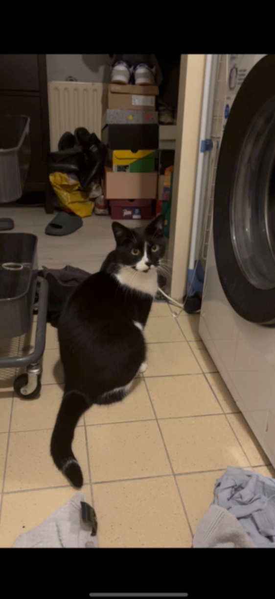 Is redelijk schuw voor vreemde ze miauwt best veel , heeft een wit ringetje om het einde van haar staart en een wit vlekje op haar kont