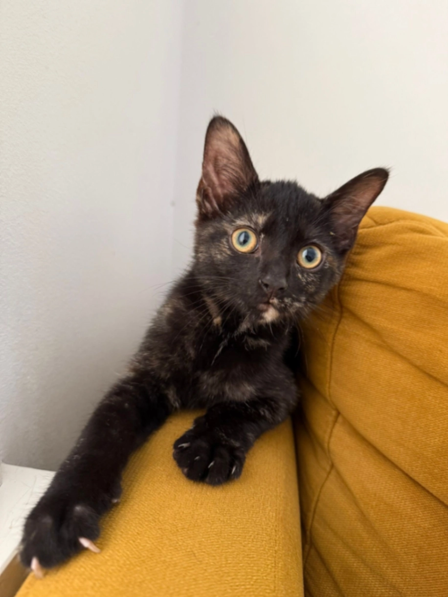 Lulu heeft een witte vlek op haar buik en rechter achterpoot. Ze heeft een beige vlek bij haar bek