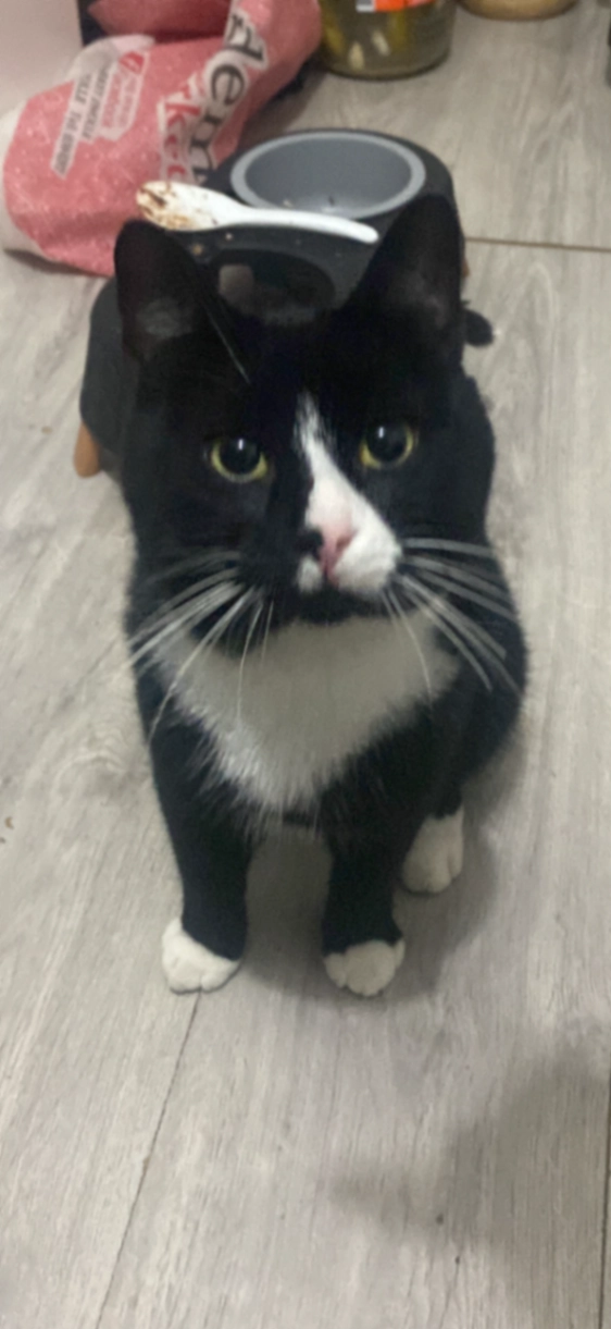 Sammie is een kater van 5 erg groot en hij is wit maar met oranje op ze oortjes en hoofdje en lang harig