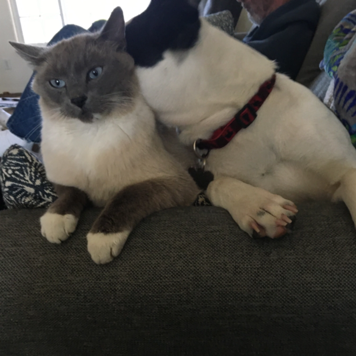 Sammy is a an older Siamese cat. Blue eyes white front paws . Very friendly and affectionate. Gets along big with all animals