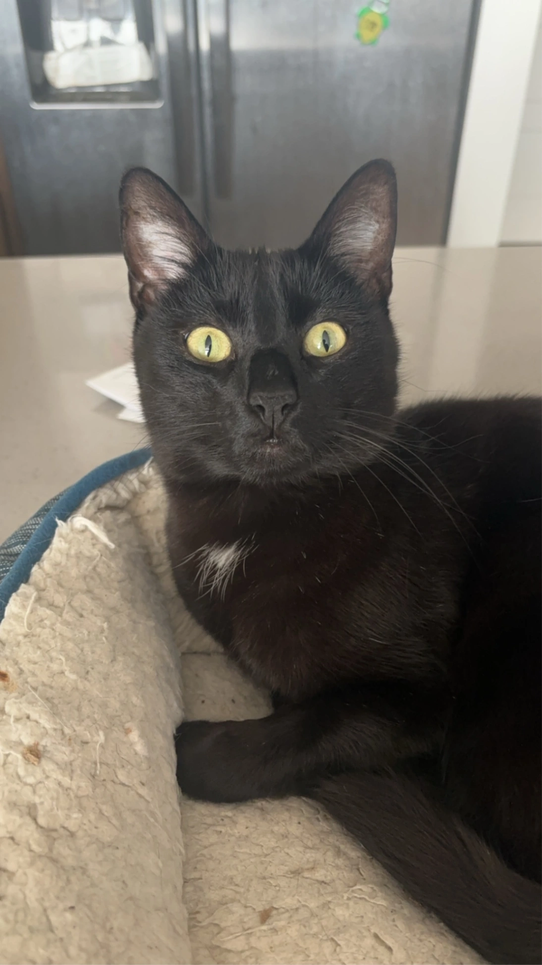 Luffy is a large adult male, yellow/green eyes and has a tuft of white on his chest. He is very friendly and chatty, doesn't scratch or bite and has more of an average to slender/muscular build.