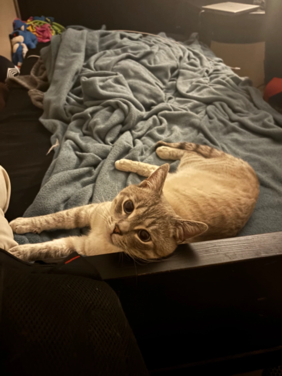 He's a very friendly, white lynx point Siamese with blue eyes and some slight gray stripes. If seen call or text 3234133860