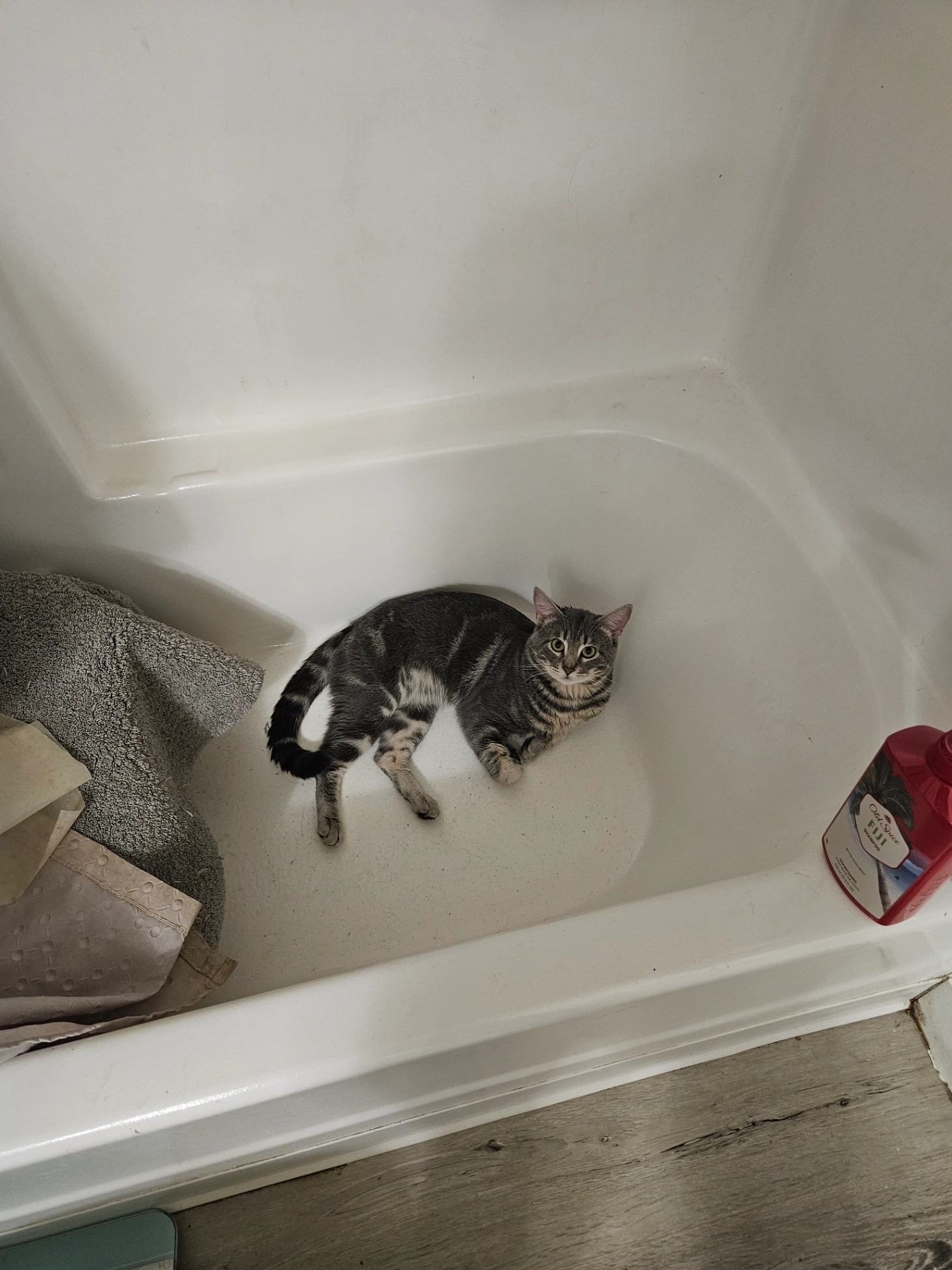 Bear is a 15 lb Tabby/Siamese mix with blue eyes. He is shy and a little skittish so is unlikely to come if you call him