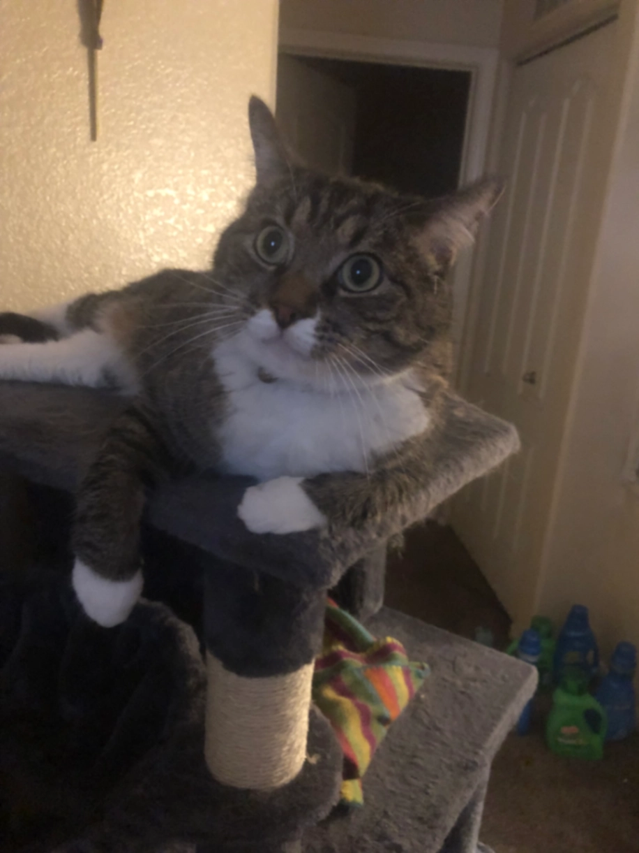 Cleo has been missing since December 21, 2025. Cleo is dark gray and white tuxedo. She have white marking on her face. She have on red cellar. Cleo is so loving loves people. If she see your garage, shed, and front door open, she will enter without no fear however Cleo does not like dogs. Cleo is strictly an indoor cat never been outside and not familiar with the neighborhood. She is probably scared and terrified. Please help us finding this precious cat. Please check your shed and garage. She might be hiding there.