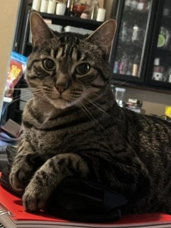 He frequents MLK and 39th Street Aly. He is a indoor, outdoor cat(un-neutered).Has eye build up from time to time (has seen a vet already, insured, and relatively healthy). He usually comes home after his adventures to eat. He also, would go across the street or hang around the store or lay in other people's yards (I tried to tell him to stay in his yard). I've had him since he was old enough to be ween from his mom (a kitten).He has strips/spots and a white under belly.His white fur is usually a little dirty(he likes to nap under the car in the drive way or on top).He has never not came home.