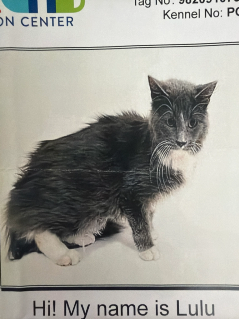 Mostly gray tortie with a tough little personality.