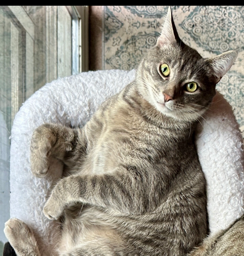 Grey male tabby cat medium to smaller sized, he may or may not have a collar on. Any information would be greatly appreciated thank you.