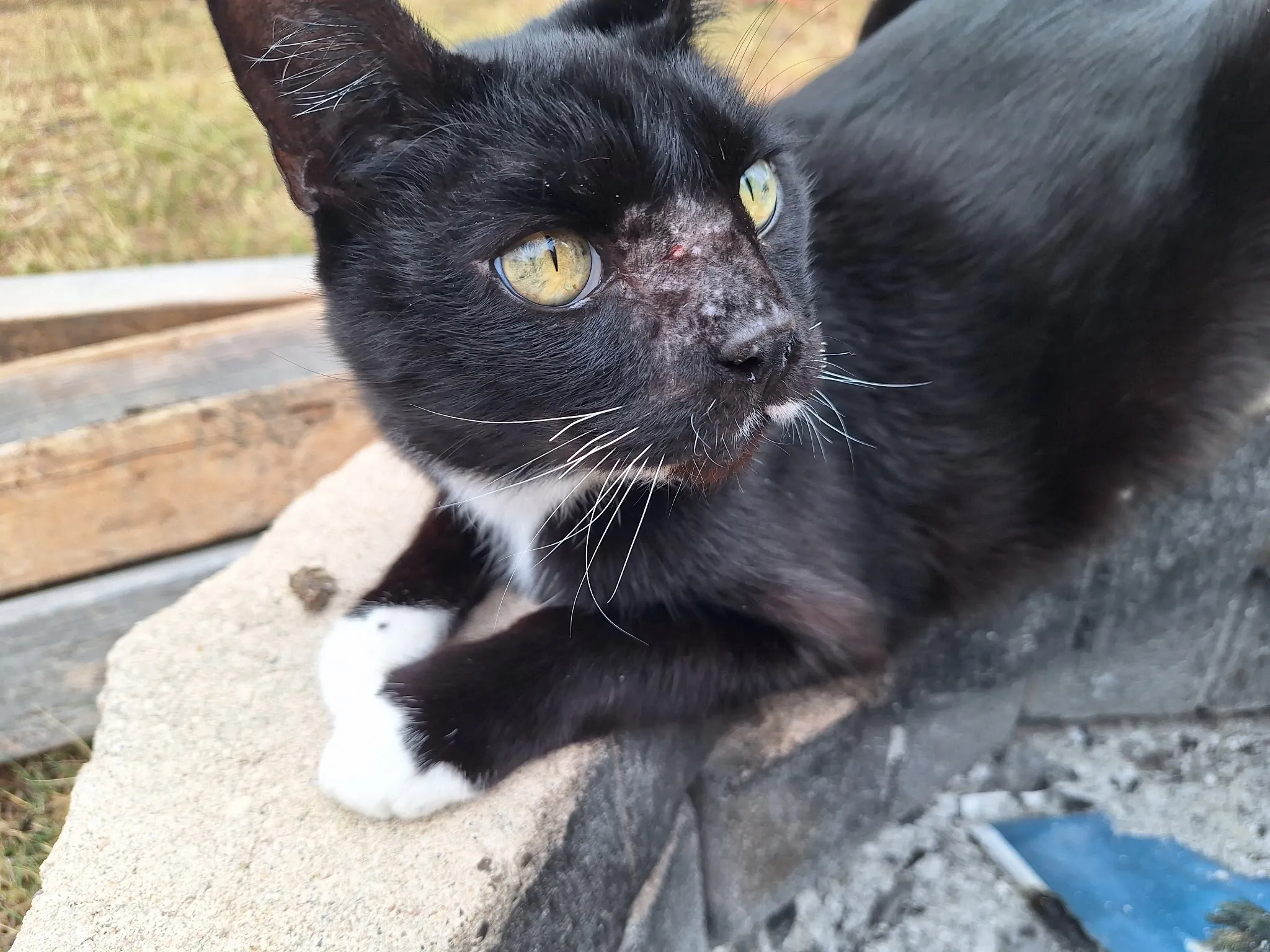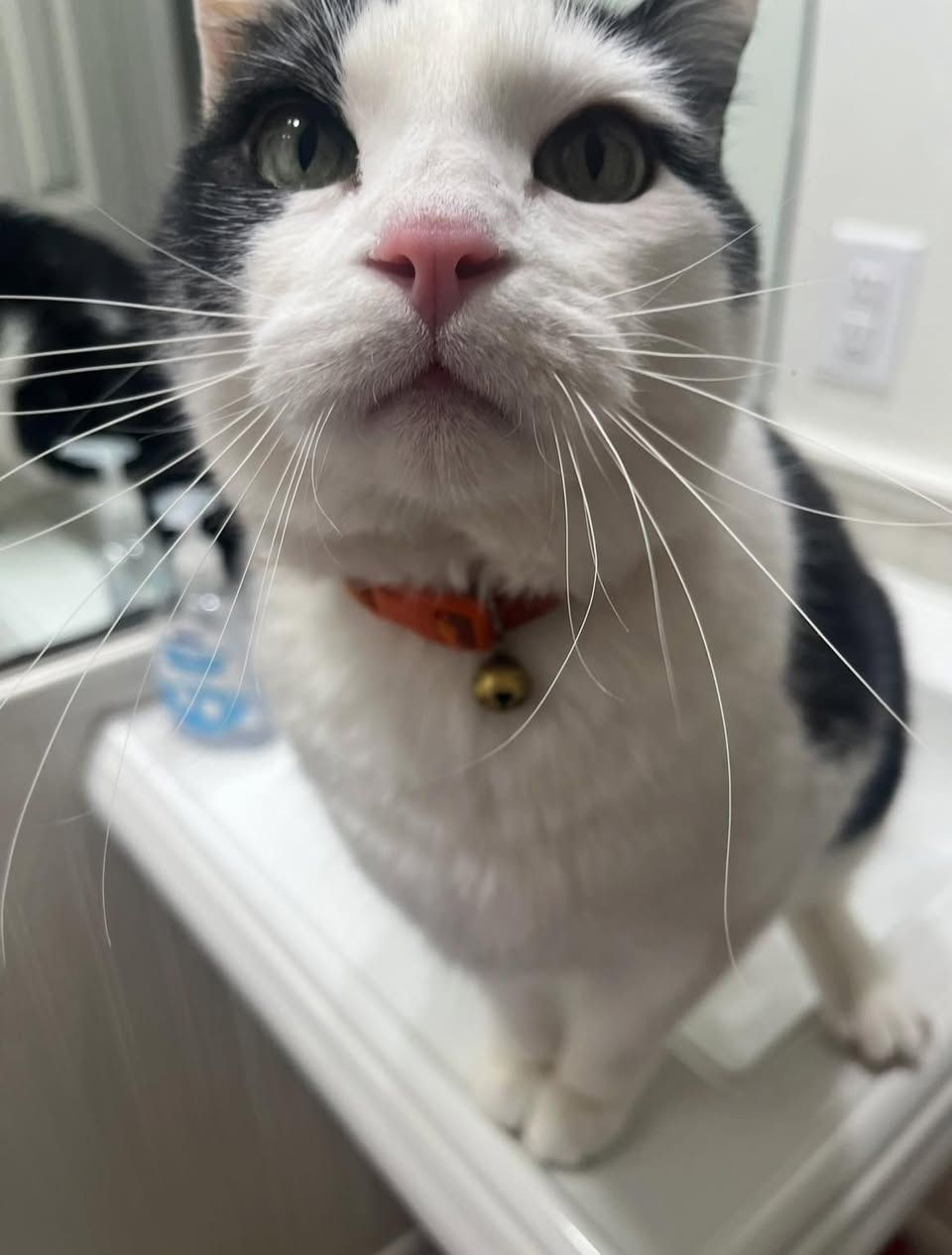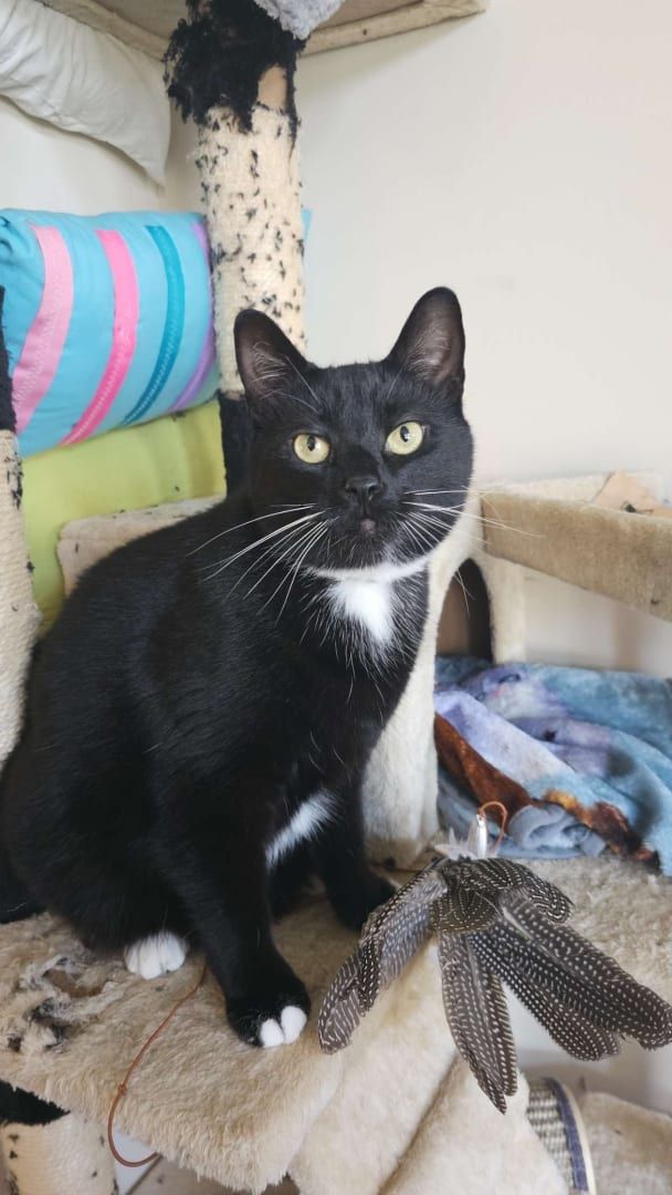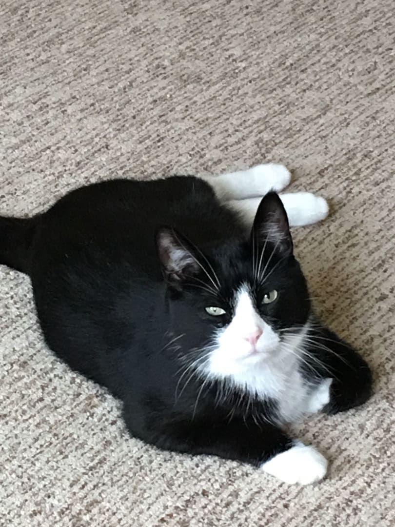 He’s super skiddish but if anybody sees a little black and white tuxedo kitty running around let us know