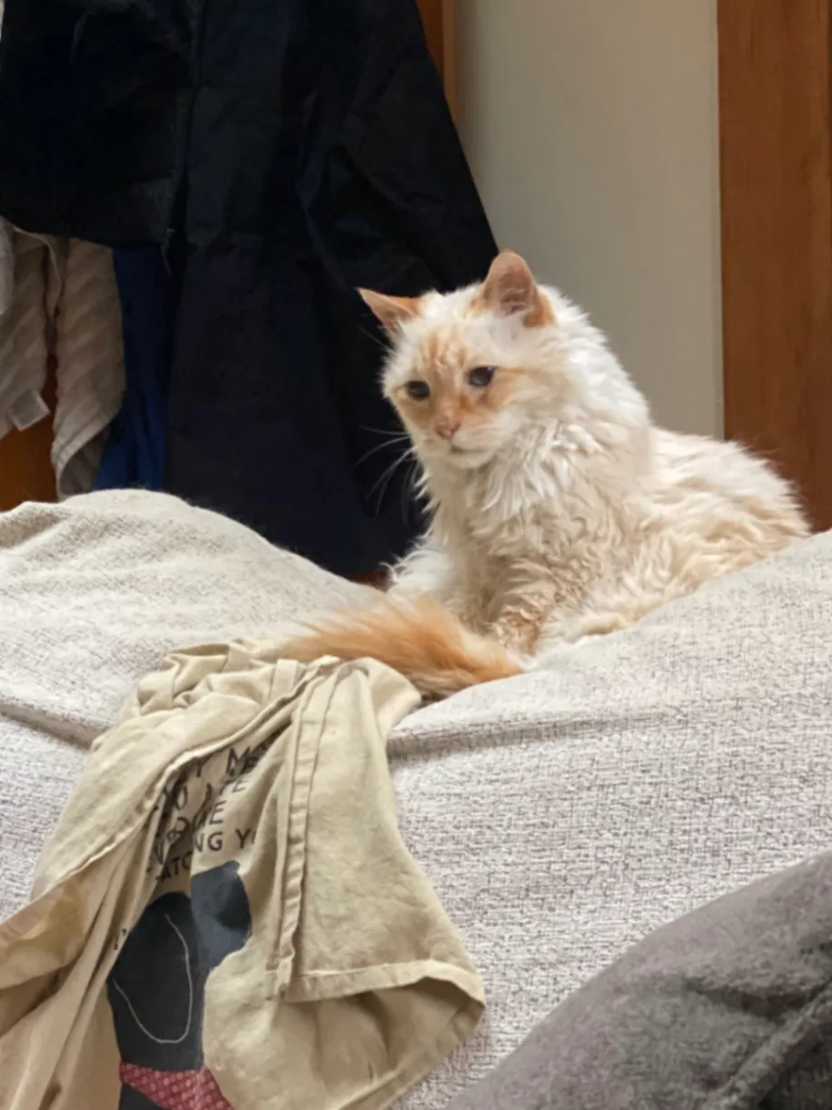 18 years old Male, skinny from age. Orange and white with a cyst on his neck, non- life threatening. Lost Sunday night by Kiwanis Ravine