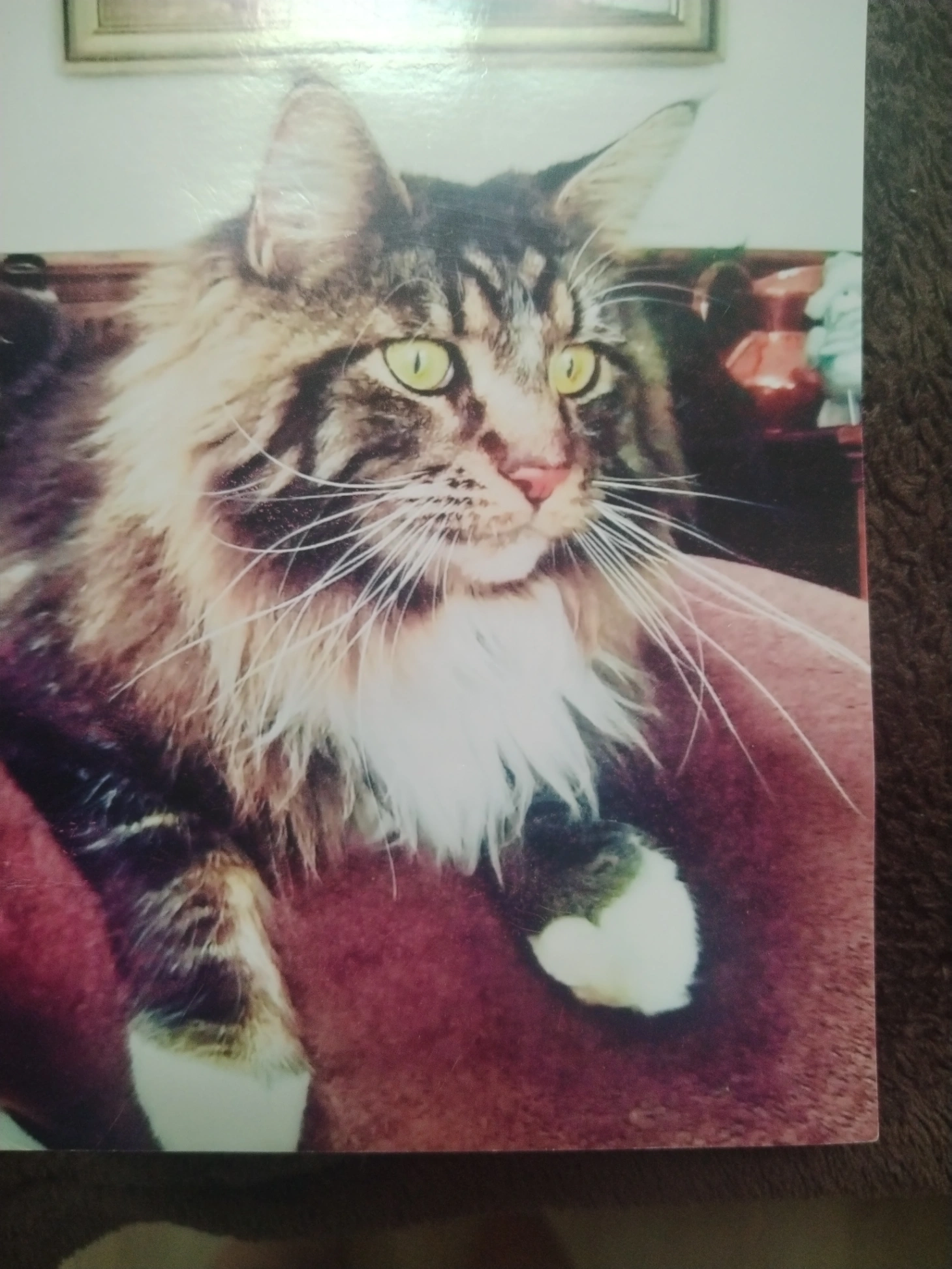 Armani is one year old, micro chipped and neutered, huge fluffy tail, most trills and murps, black in color has strands of grey on his tail, responds to the name Armani or soet pop