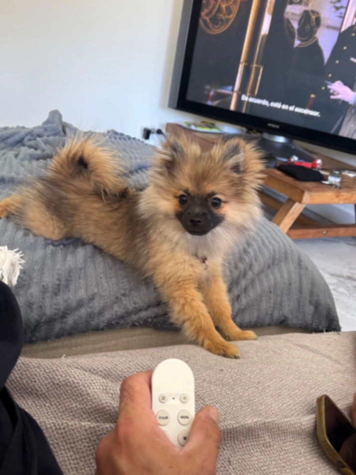 Pomchi black brown not too friendly max 3 kilos pink collar with cat bell
