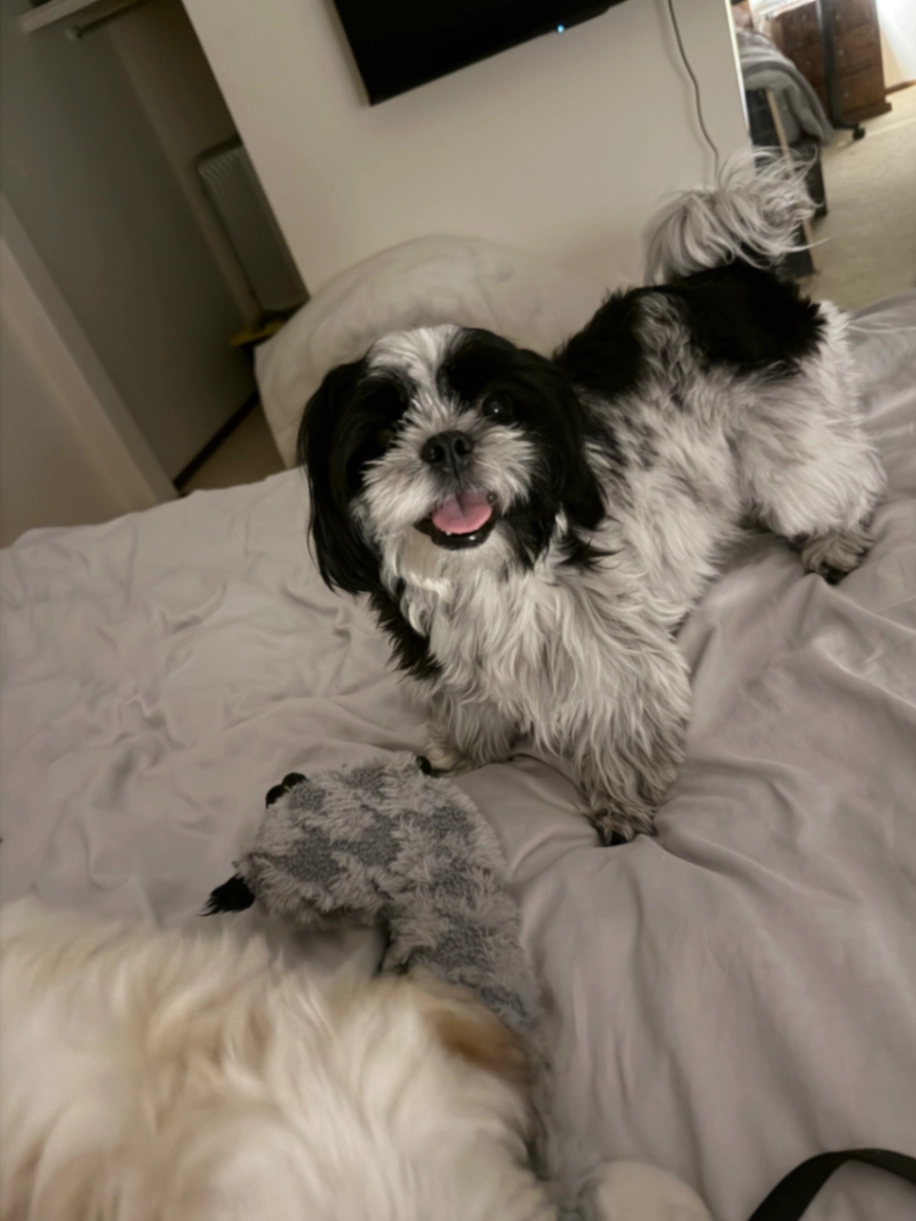 Eevee is our 2 year old dog who has severe anxiety and will not approach anyone. She’s black and white and is of small build.