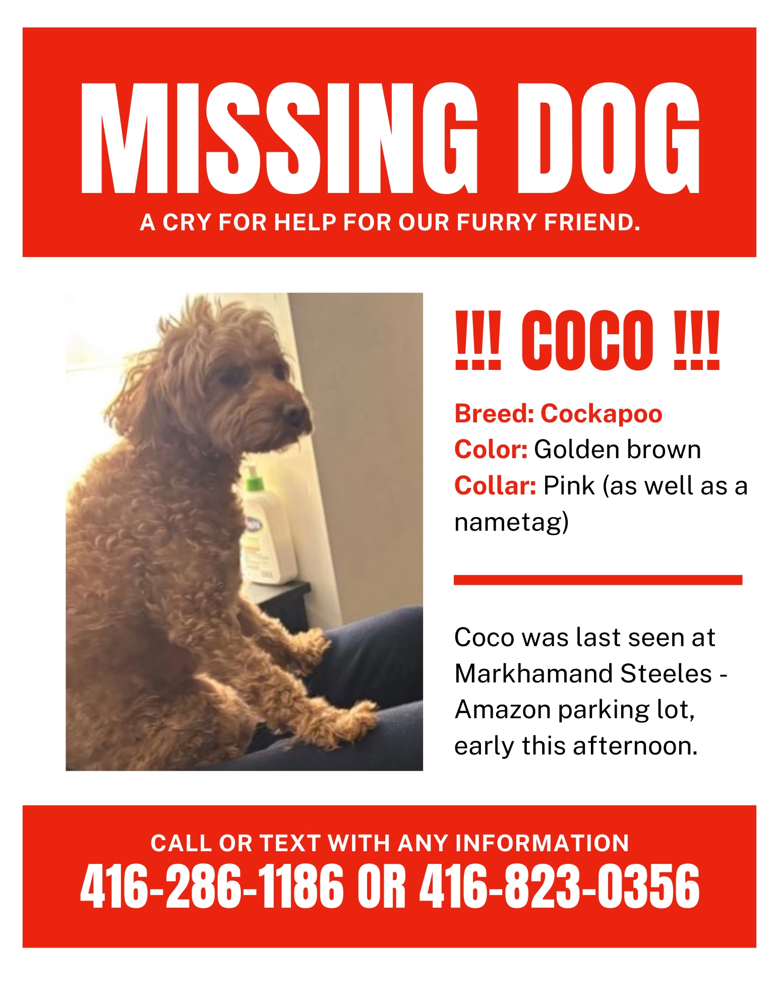 Have you seen Coco? Please help us by checking your garage, attic, shed, and outdoor spaces.
