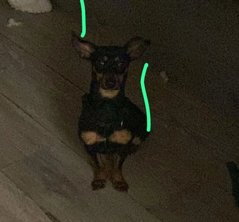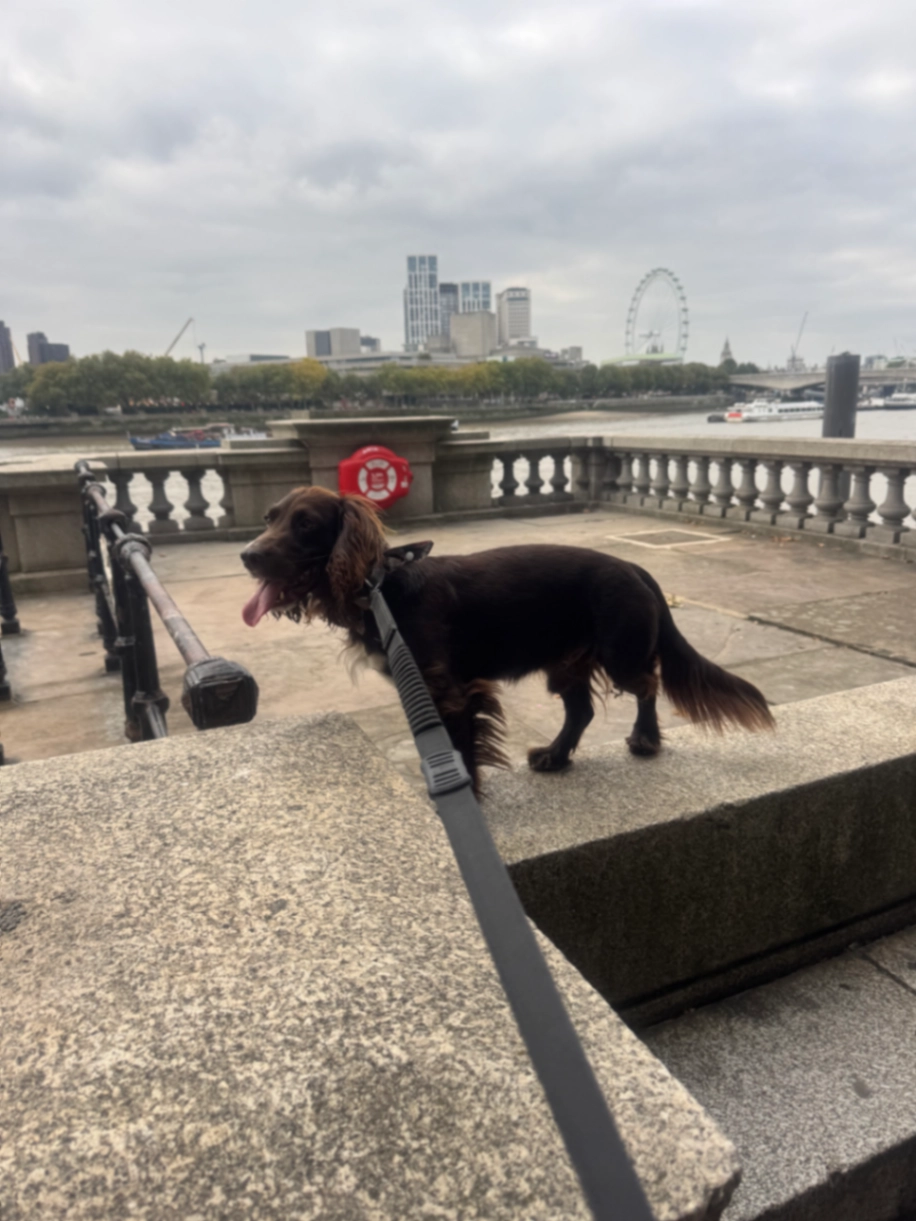 My dog (female). It is a Cavalier King Charles Spaniel - tricolor. Its back is all black, its belly, the tip of its tail and its legs are white. She is full of energy and gives us a lot of happiness.
