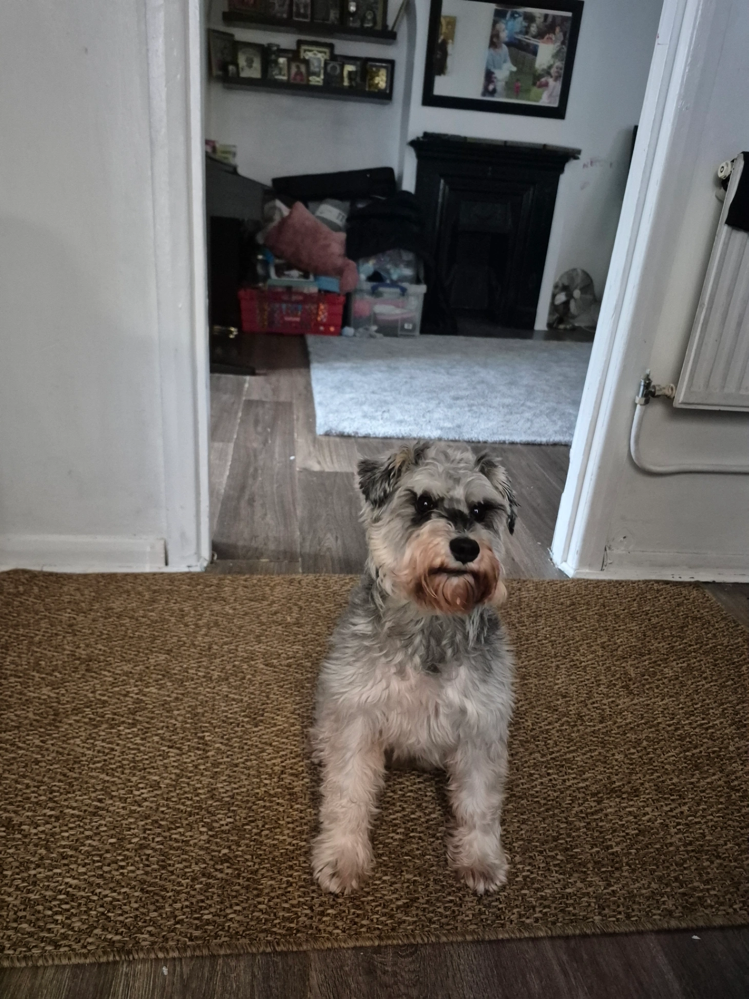 Yorkshire terrier - answers to Ozzy. A 4 year old and small for his age and he don’t like strangers with no collar and bites a lot