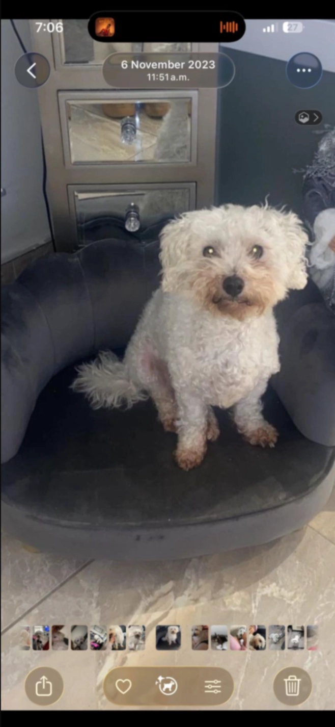 Little Skinny white dog he is old but very friendly he might be abit scared he has never been out this long before