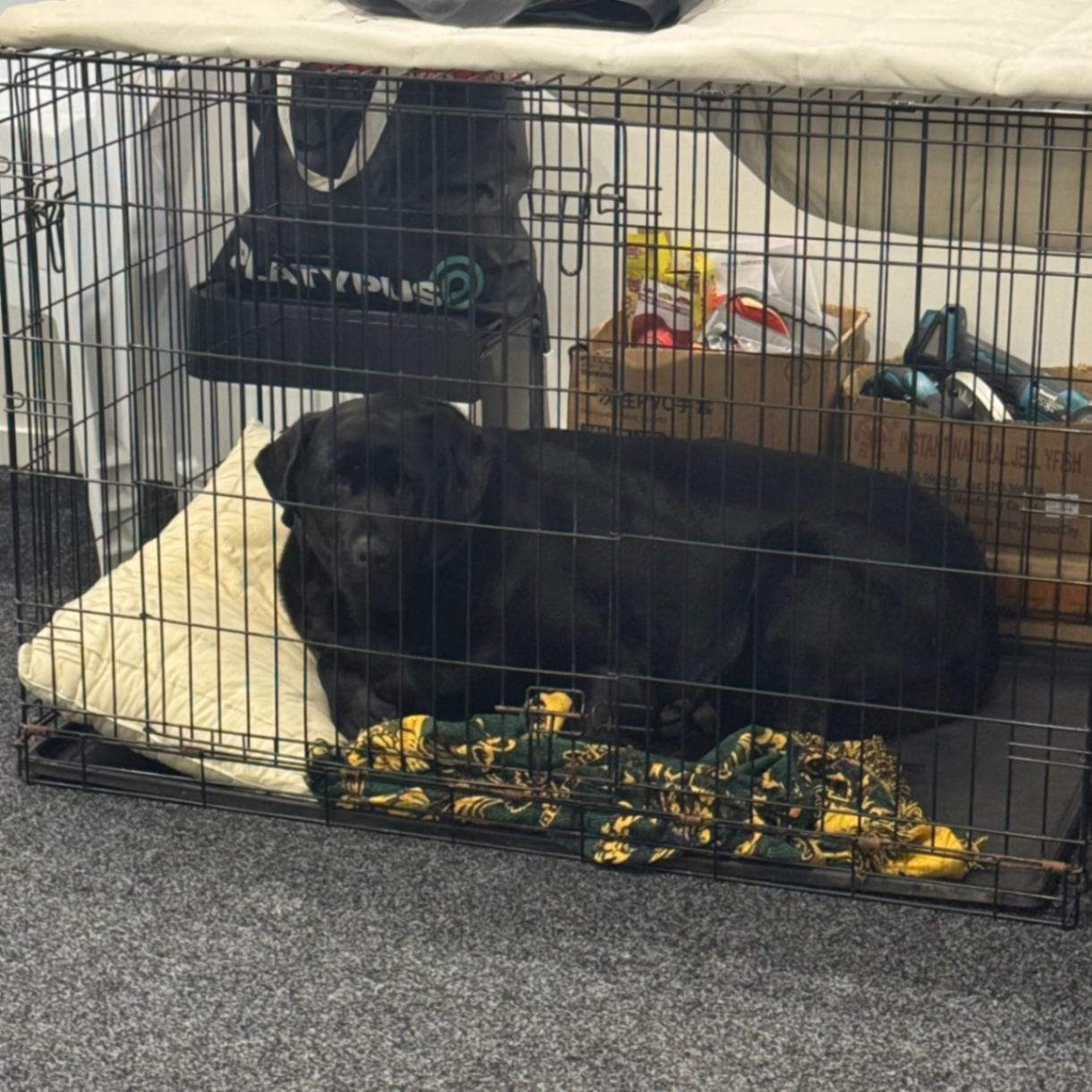 5 year old black labordor, male, Sterilize. Fat, well behaved would respond to "baliu"(86 in chinese)