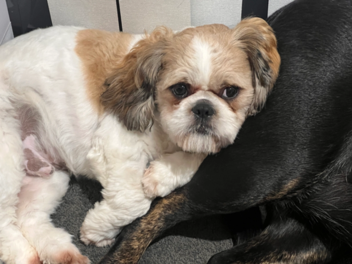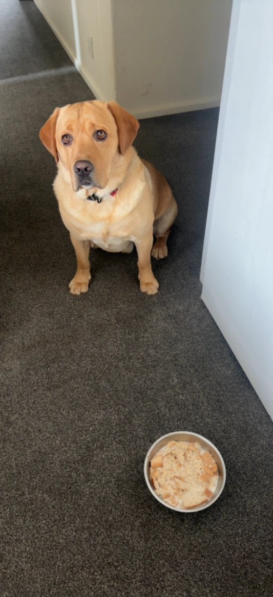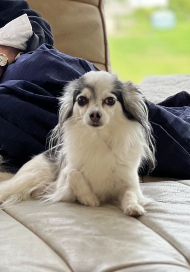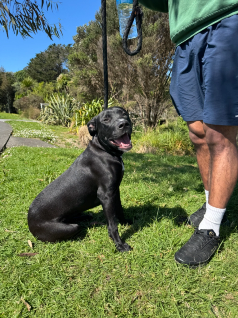 Hi everyone, please be in the lookout for my dog. She has a short tail and a short build. She is predominantly covered in black fur and has a bit of white on her chest. She has very light brown eyes.