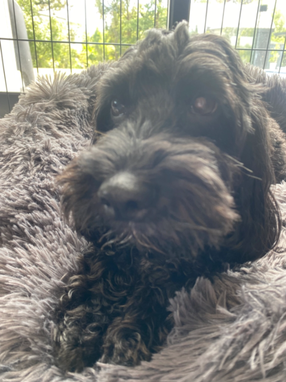 3yr old Cavoodle, light brown, sweet natured and responds to name. Sore foot, may be limping