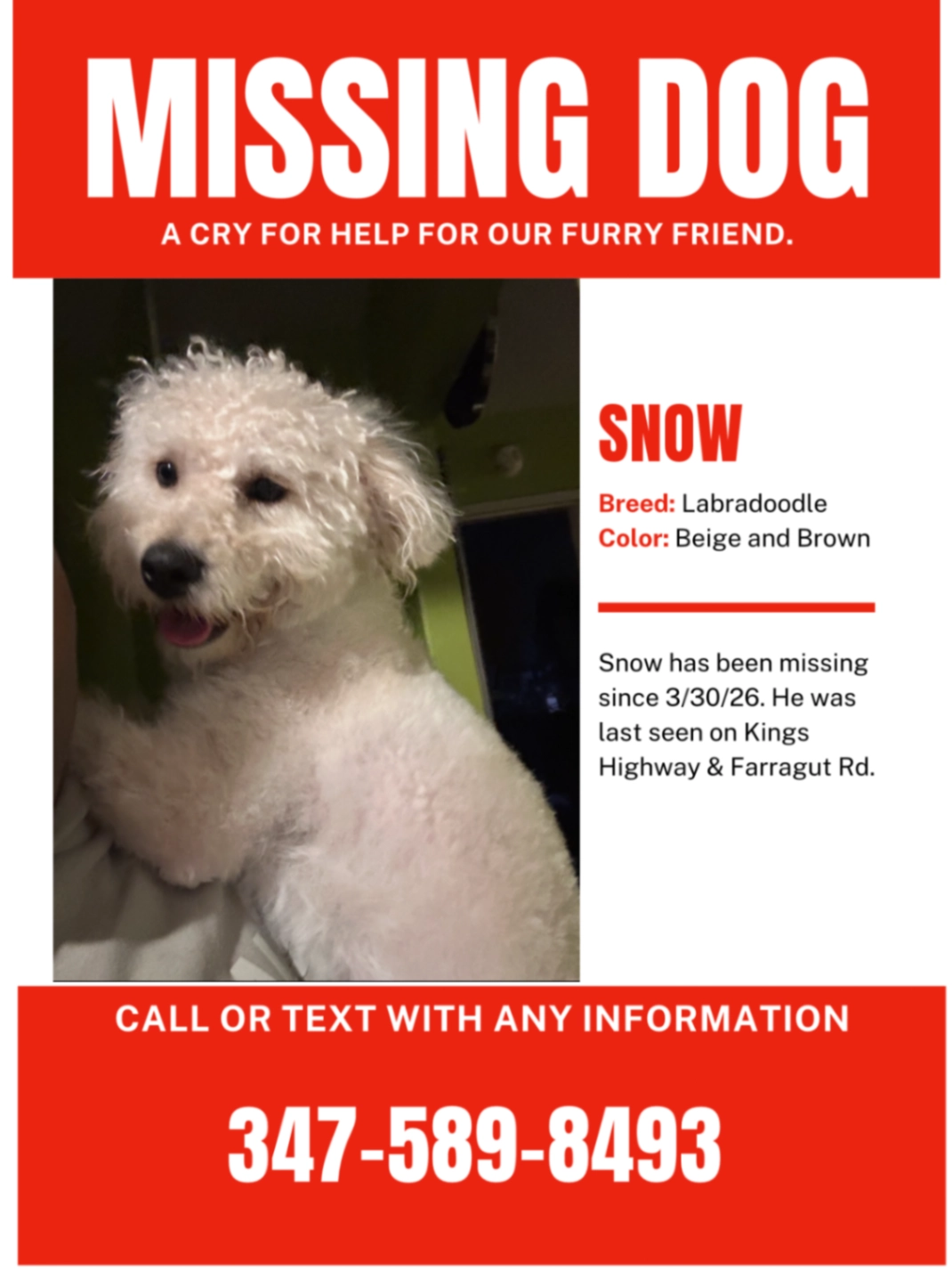 Have you seen Snow? Please help us by checking your garage, attic, shed, and outdoor spaces.