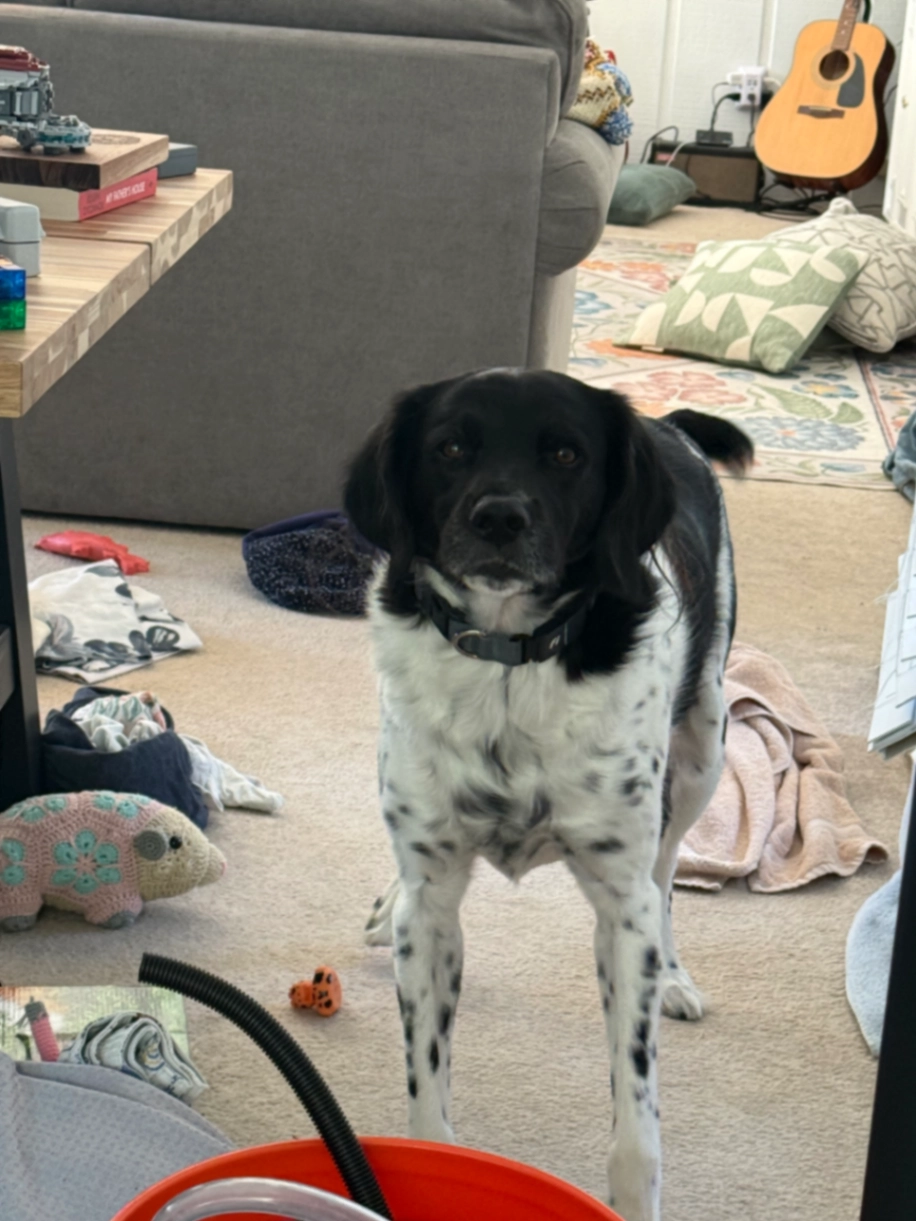 Black and white Brittany about 60 pounds