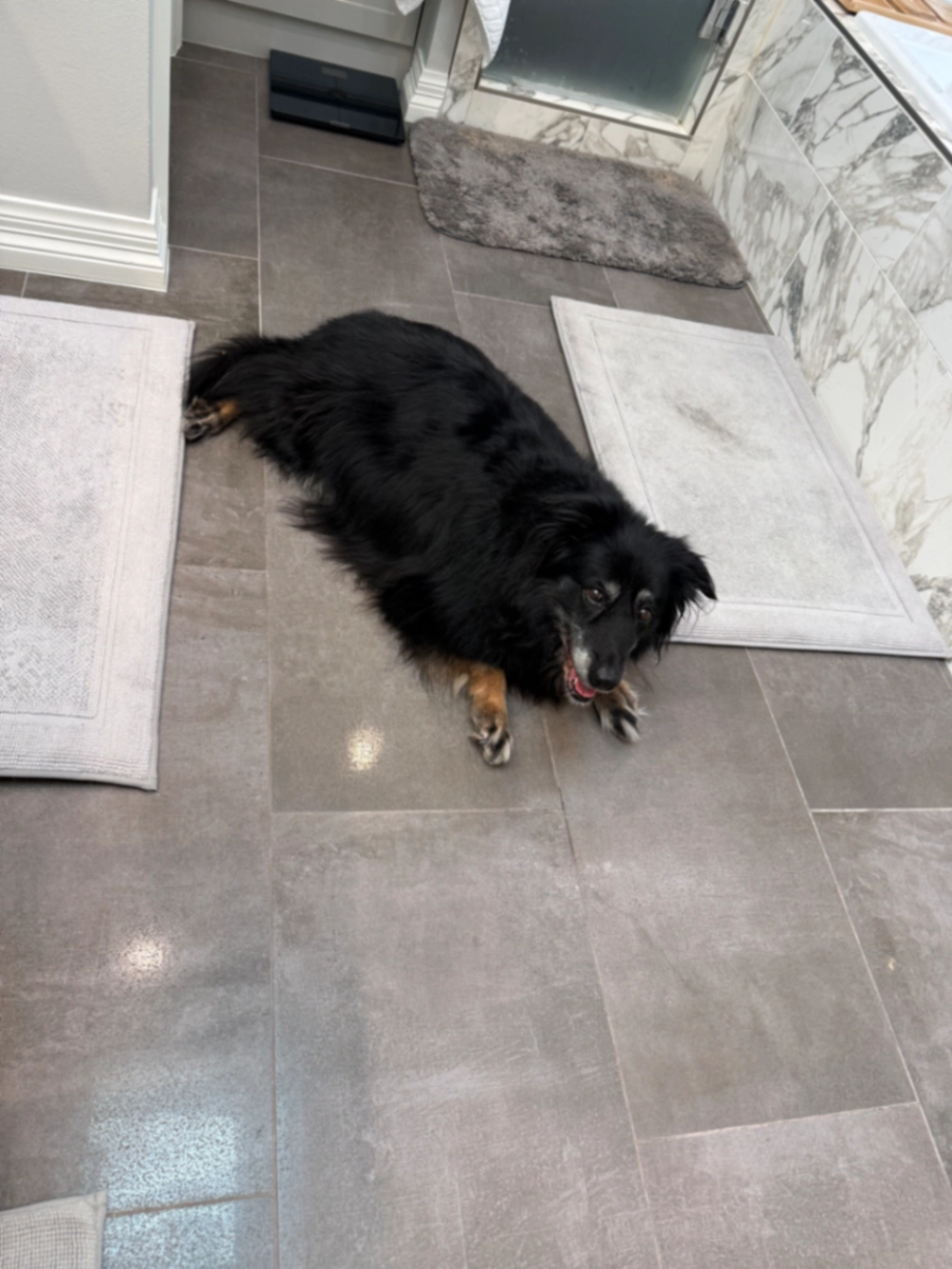 Super chill fluffy 10 year old dog /