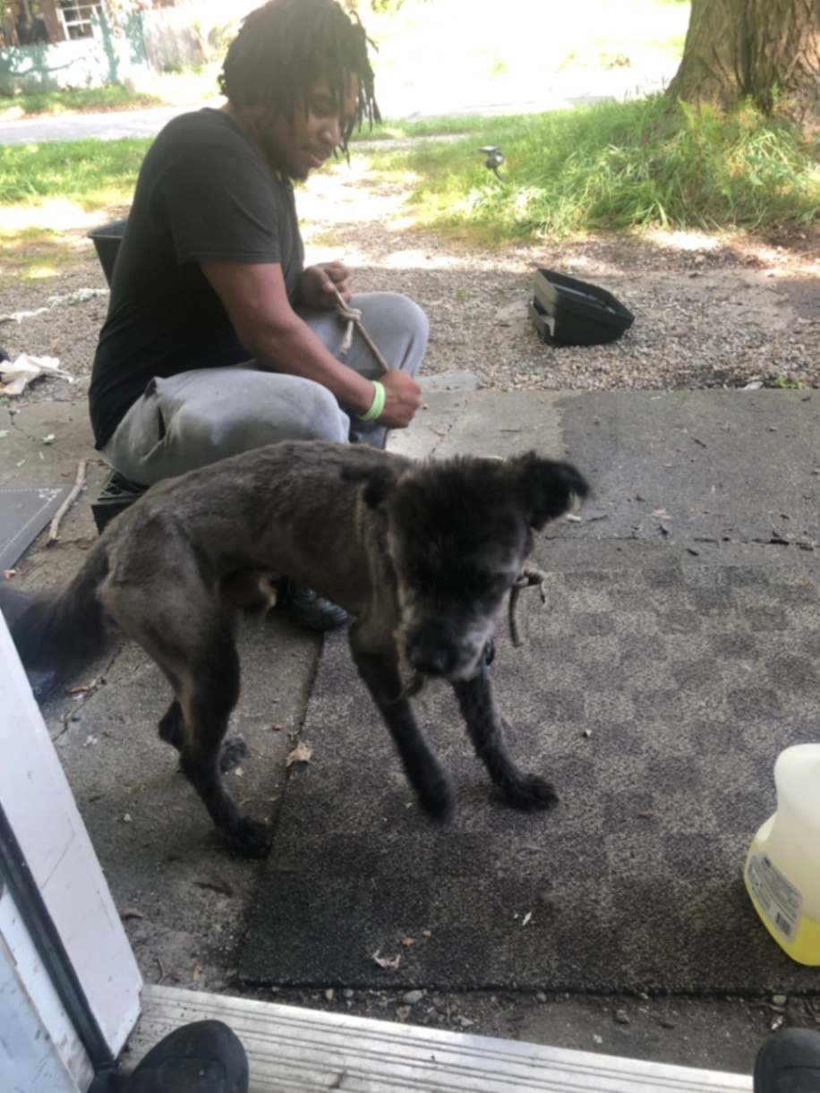 He has more hair now this picture of him getting a haircut 🙏🏽🐕🦺🙏🏽