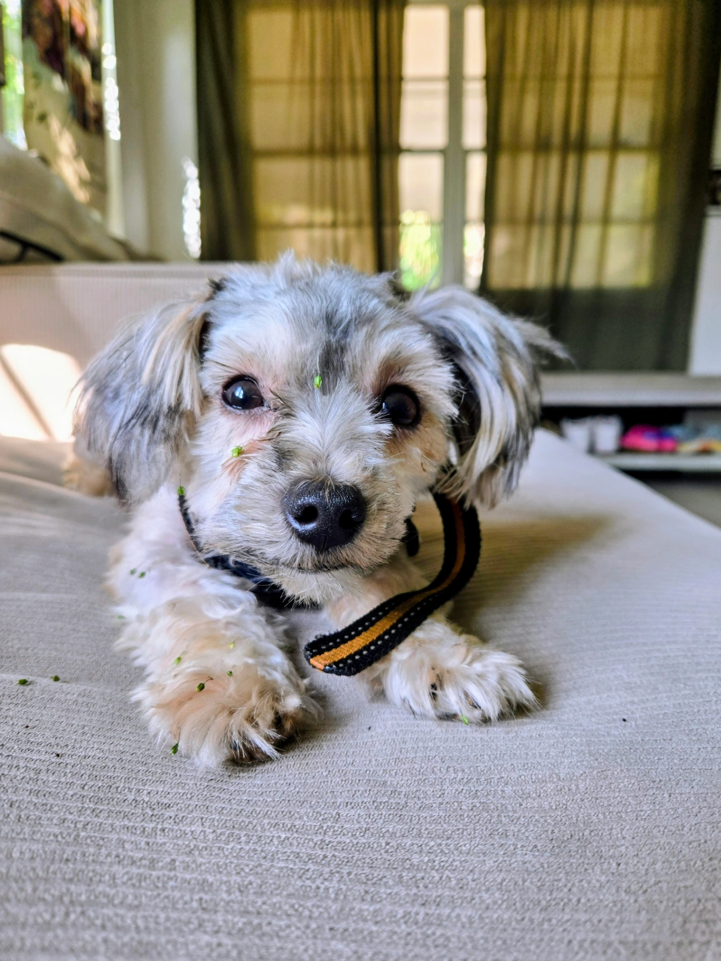 He is extremely friendly would most likely walk up to anybody nearby. He has a lighter coat than most Yorkie's do and he is unfortunately not wearing his collar.